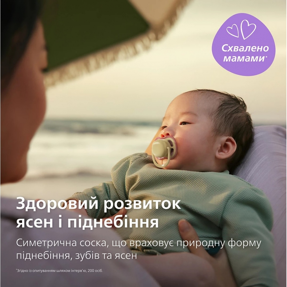 Пустушка Philips Avent Ultra Air 0-6 міс. (2 шт.) має надзвичайно великі вентиляційні отвори, щоб шкіра могла «дихати» та залишалась сухішою. Ортодонтична симетрична соска зі 100% харчового силікону підтримує природний розвиток ротової порожнини. Текстурований силікон дає знайоме відчуття та високу прийнятність у дітей. У комплекті футляр для швидкої стерилізації у мікрохвильовій печі.