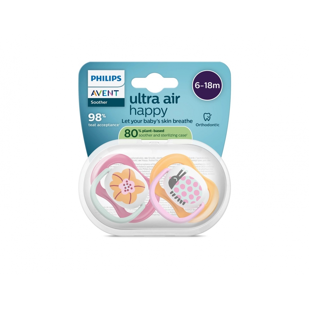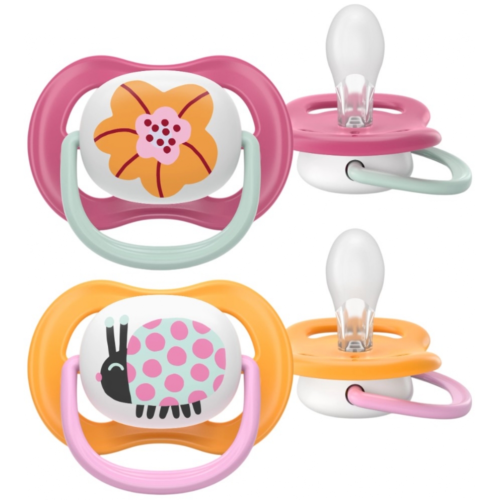 Пустушка Avent Ultra Air, 6-18 міс., 2шт, дизайн для дівчат.