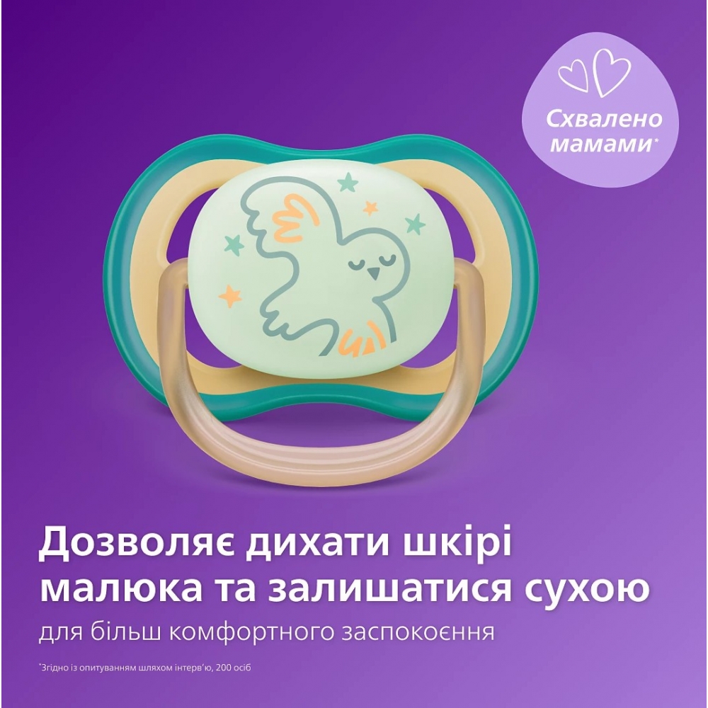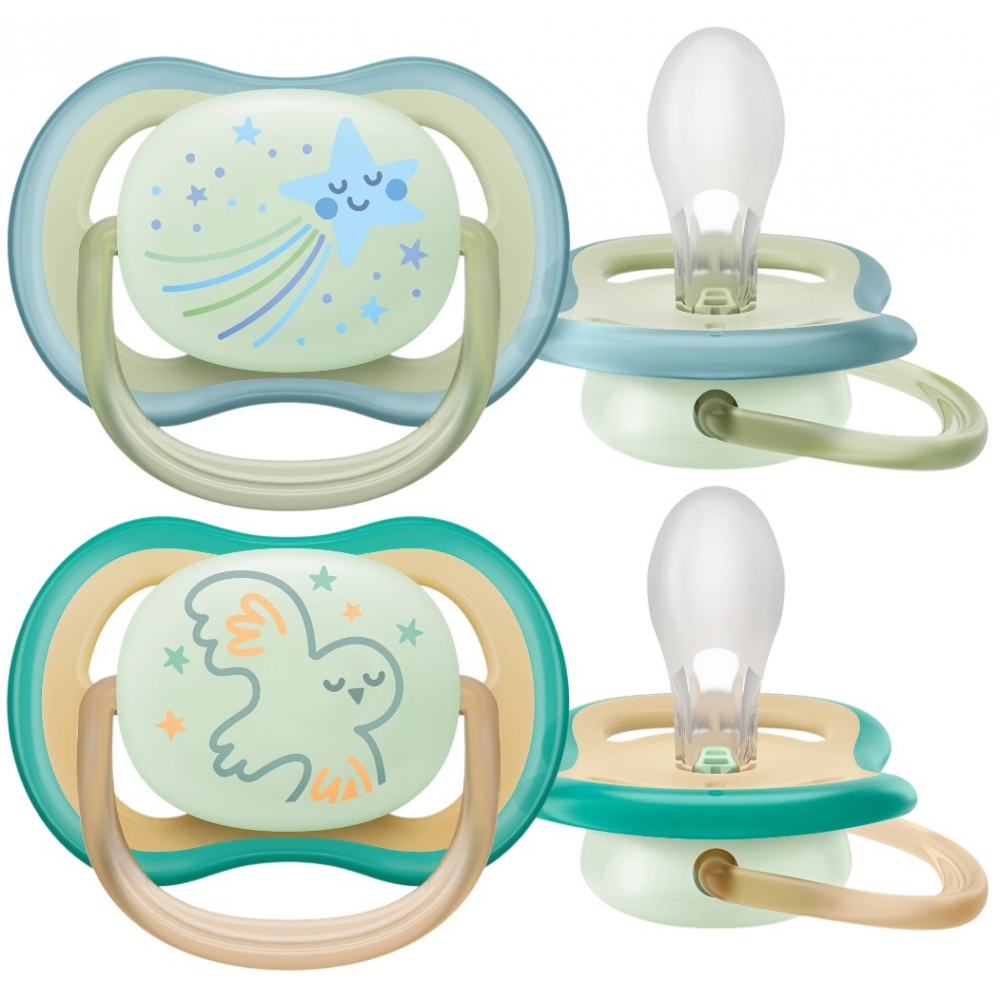 Пустушка Avent Ultra Air Нічна, 0-6 міс., 2шт, дизайн нейтральний