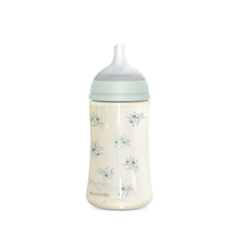 Ніжні пастельні відтінки та квіткові мотиви роблять колекцію Poetry гармонійною та елегантною. Прозорий корпус із поліаміду робить пляшечку надзвичайно легкою та зручною, а фізіологічна соска SX Pro™ забезпечує природне годування і комфорт для малюка.