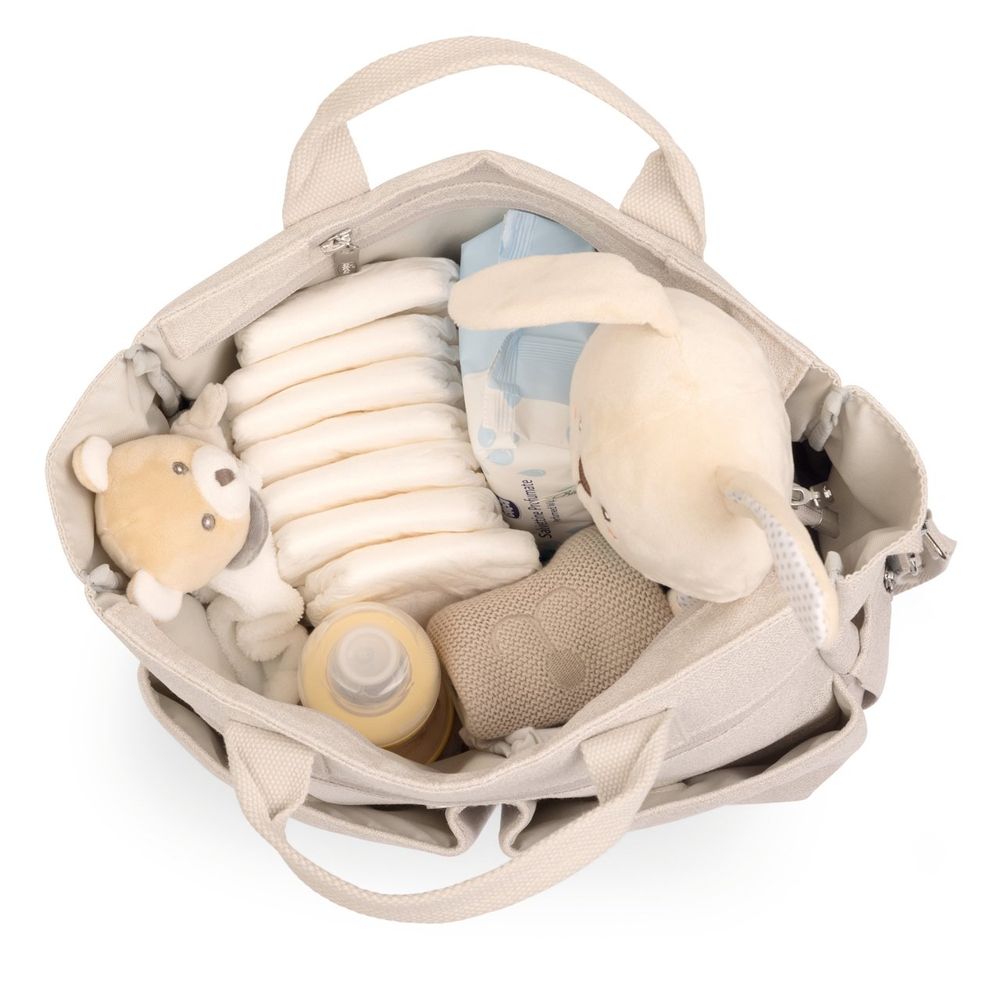 Сумка-органайзер на коляску с множеством функциональных карманов, позволяющая хранить необходимые вещи во время прогулки, освобождая руки и поддерживая порядок.