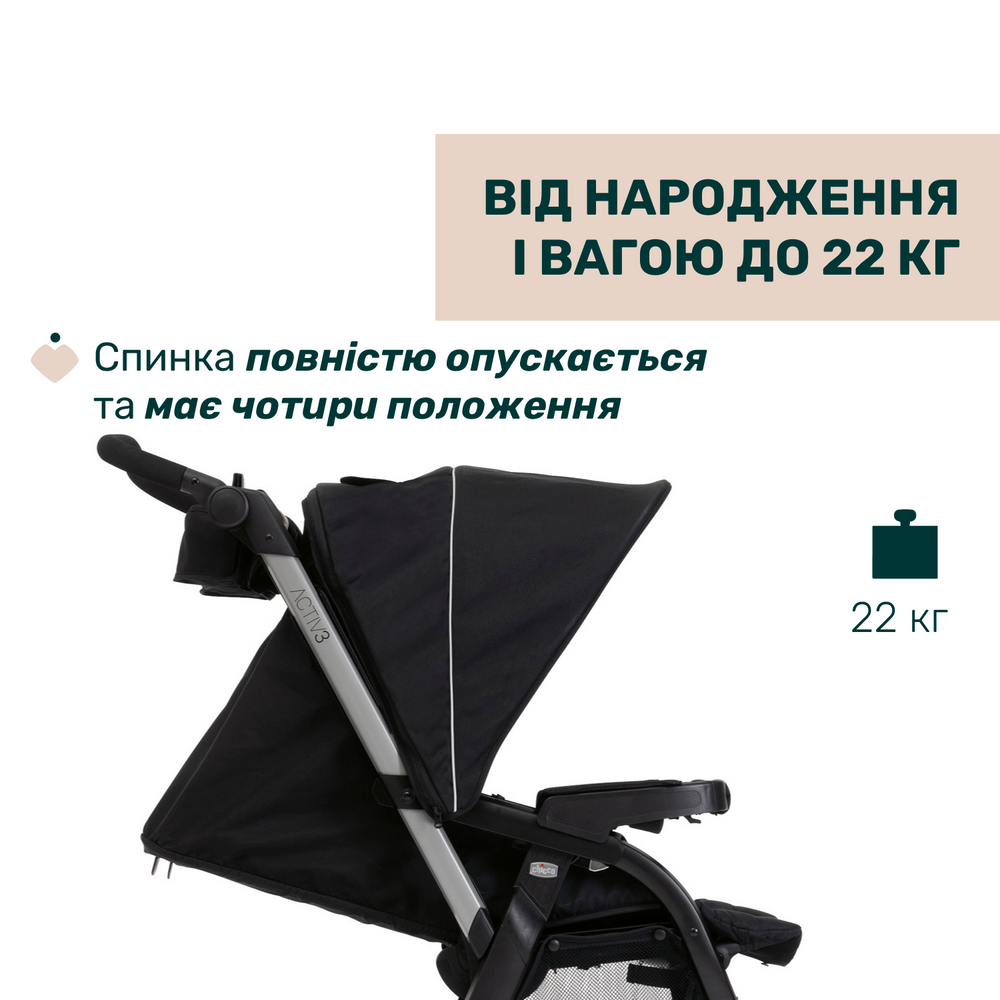 Універсальна коляска Activ3 New — ідеальний вибір для сучасних активних батьків. Поєднує функціональність прогулянкової коляски та комфорт люльки, що забезпечує маневреність, надійність та стиль від народження до 3-4 років.