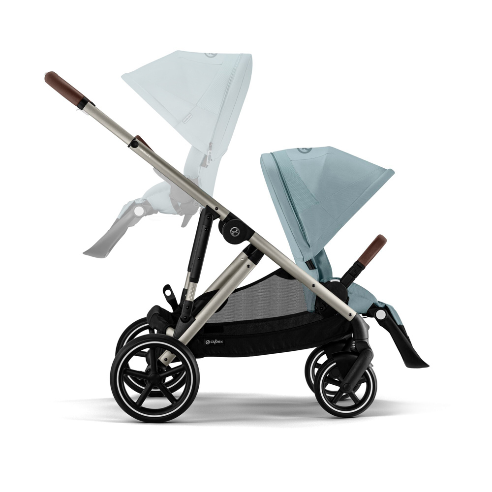 Газель S имеет две большие корзины для покупок и может быть превращена в тележку для двойни, когда появится второй ребенок, с разными комбинациями, такими как прогулочные сиденья, детские переноски и детские автокресла CYBEX (не включены в цену).