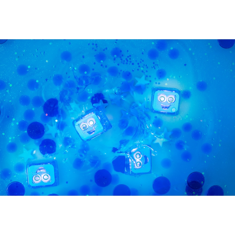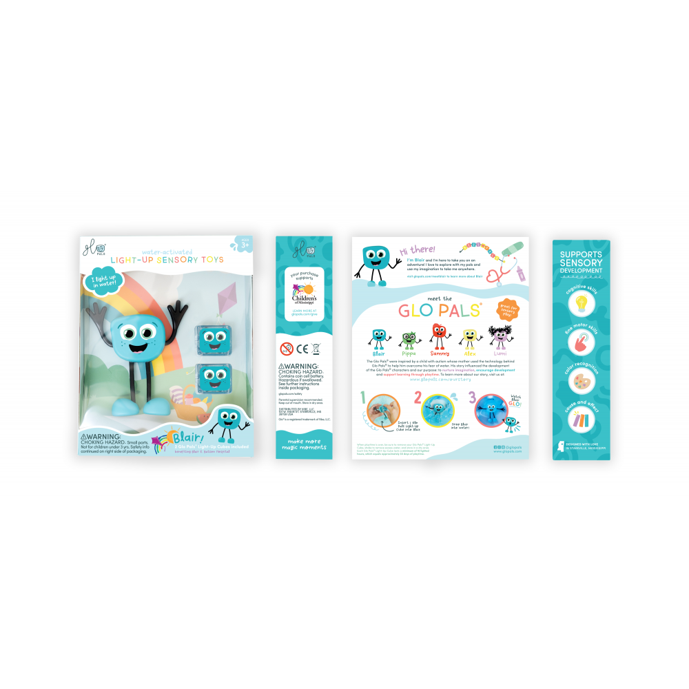 Персонаж із серії Glo Pals включає 2 світлові кубики, виготовлені зі 100% переробленого пластику. Вставте світловий куб Glo Pals у задню частину фігурки, опустіть її у воду — і вона засвітиться, перетворюючи звичайну гру у воді на справжню сенсорну пригоду.