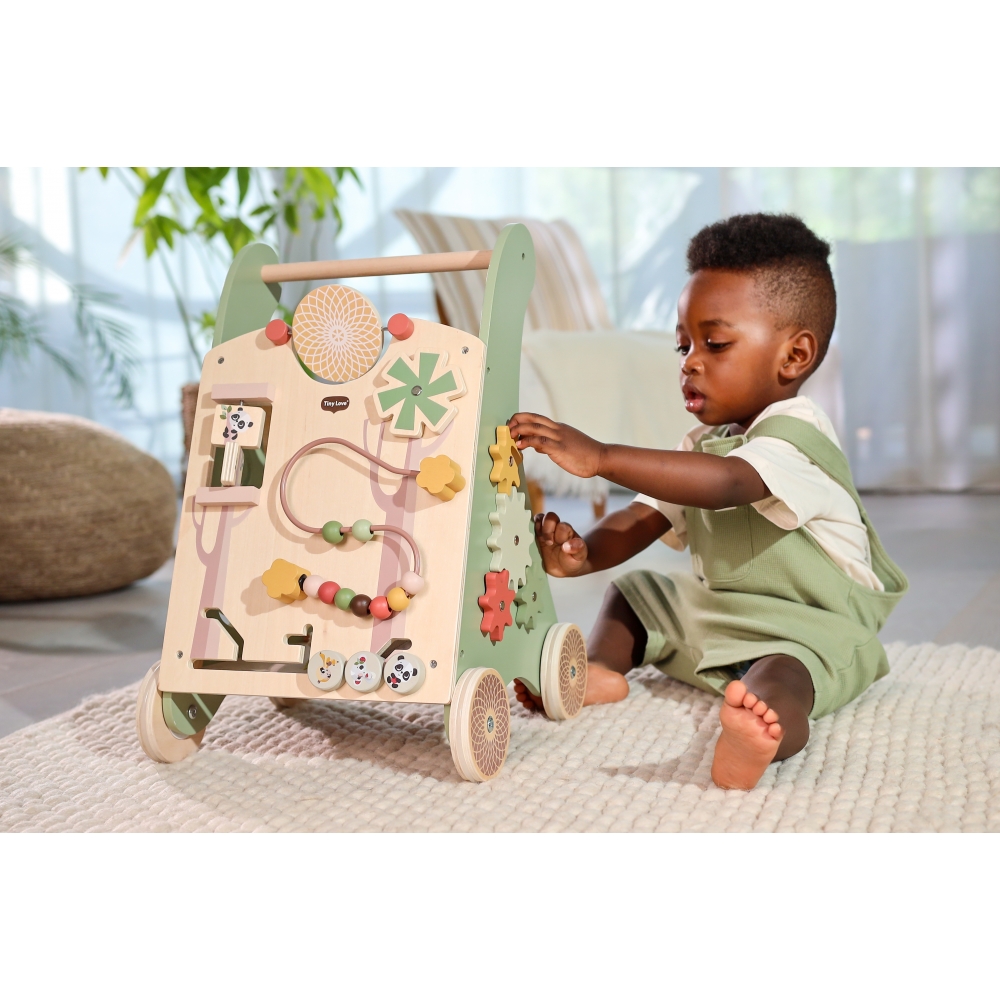 Це іграшка, яка дарує розвиток через гру: дитина вчиться контролювати тіло, відкриває нові навички та розвиває впевненість у собі. Стильний дизайн у натуральних пастельних відтінках і тиха робота коліс роблять розвиваючий центр улюбленим як для дітей, так і для батьків.