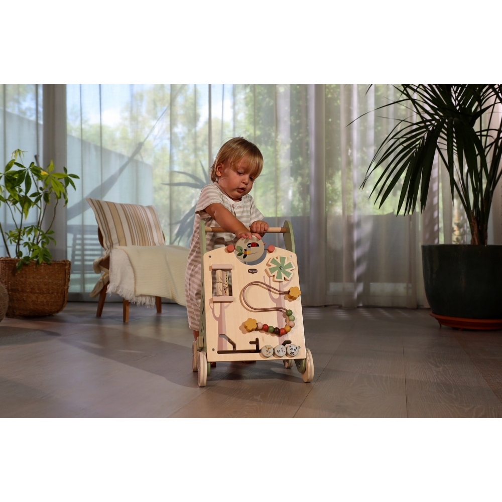 Розвиваючий центр із колекції Boho Chic поєднує еко-дизайн, безпечні матеріали та 12 інтерактивних активностей для малюка. Іграшка допомагає дитині зробити перші впевнені кроки, розвиваючи рівновагу, координацію та дрібну моторику.