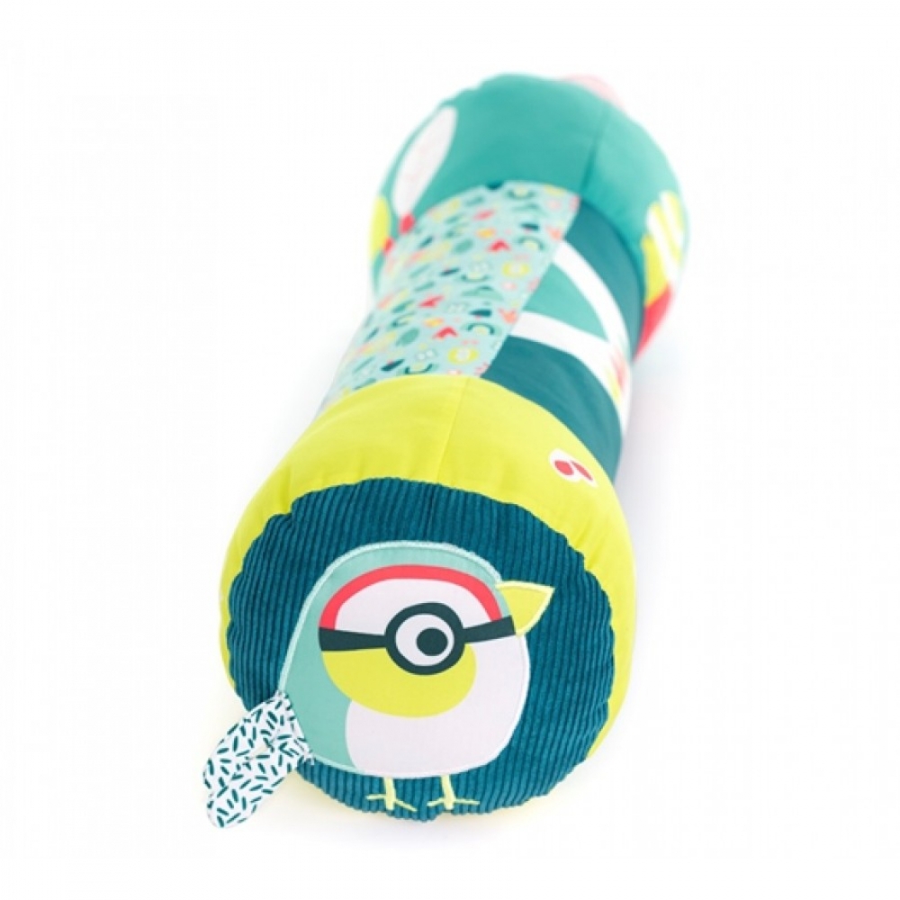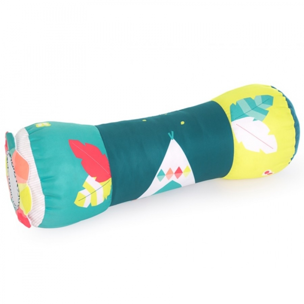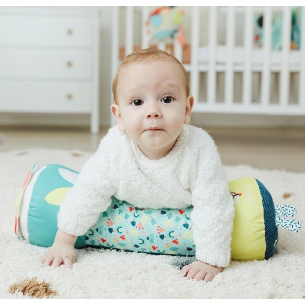 Цей великий розвиваючий валик створений для стимуляції повзання малюка. На ньому є матеріали з різною текстурою, брязкальце, маленьке дзеркальце і шарудливі елементи. Валик спеціально розроблений у висококонтрастних кольорах, які стимулюють зір малюка. Ідеально підходить для розвитку необхідних груп м'язів. Валик дуже простий у використанні: дитина котить його перед собою і намагається переповзти через нього. Іграшка служить опорою, надає впевненості малюкові в його маневрах і стимулюватиме рух уперед.