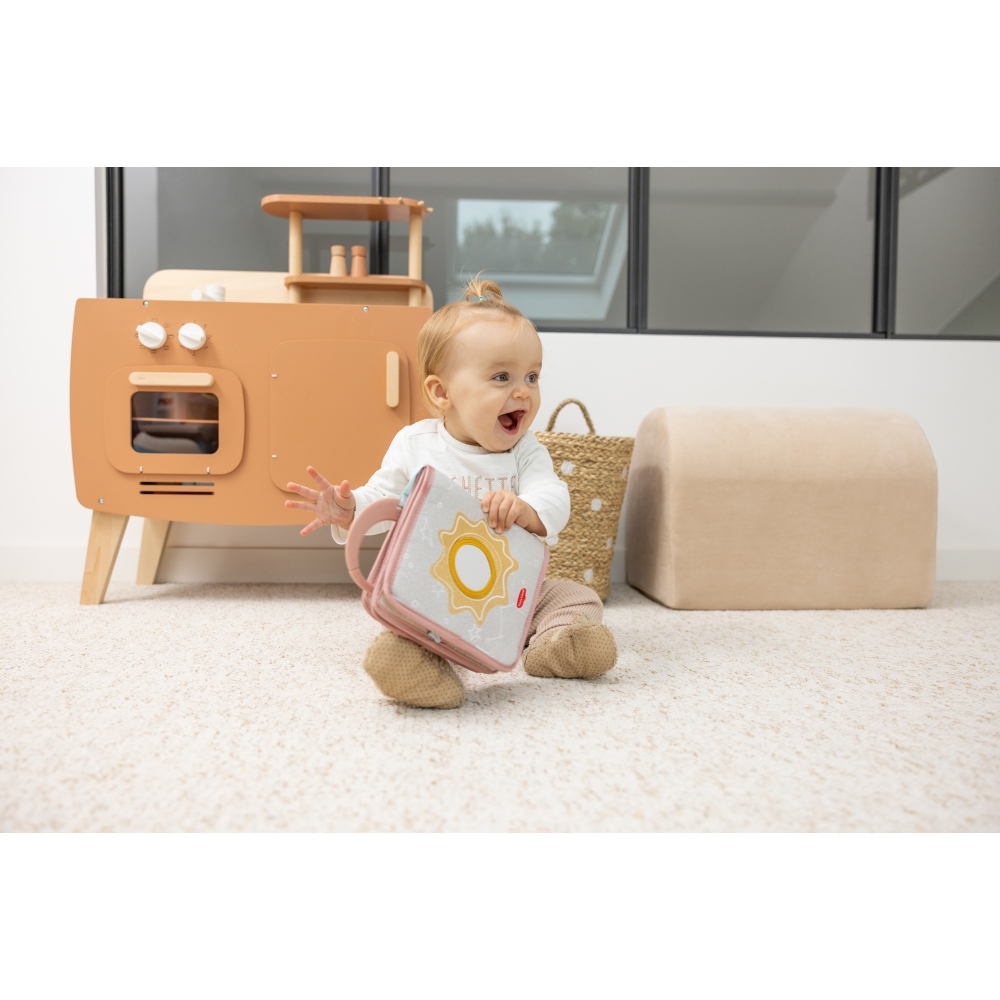 Розвиваюча книжка “Єдиноріг” стимулює сенсорне сприйняття, дрібну моторику та уяву дитини. Ідеально підходить для спільних ігор удома або під час прогулянок. М’які текстури, різноманітні звуки та рухомі елементи заохочують малюка досліджувати навколишній світ через дотик і звук.