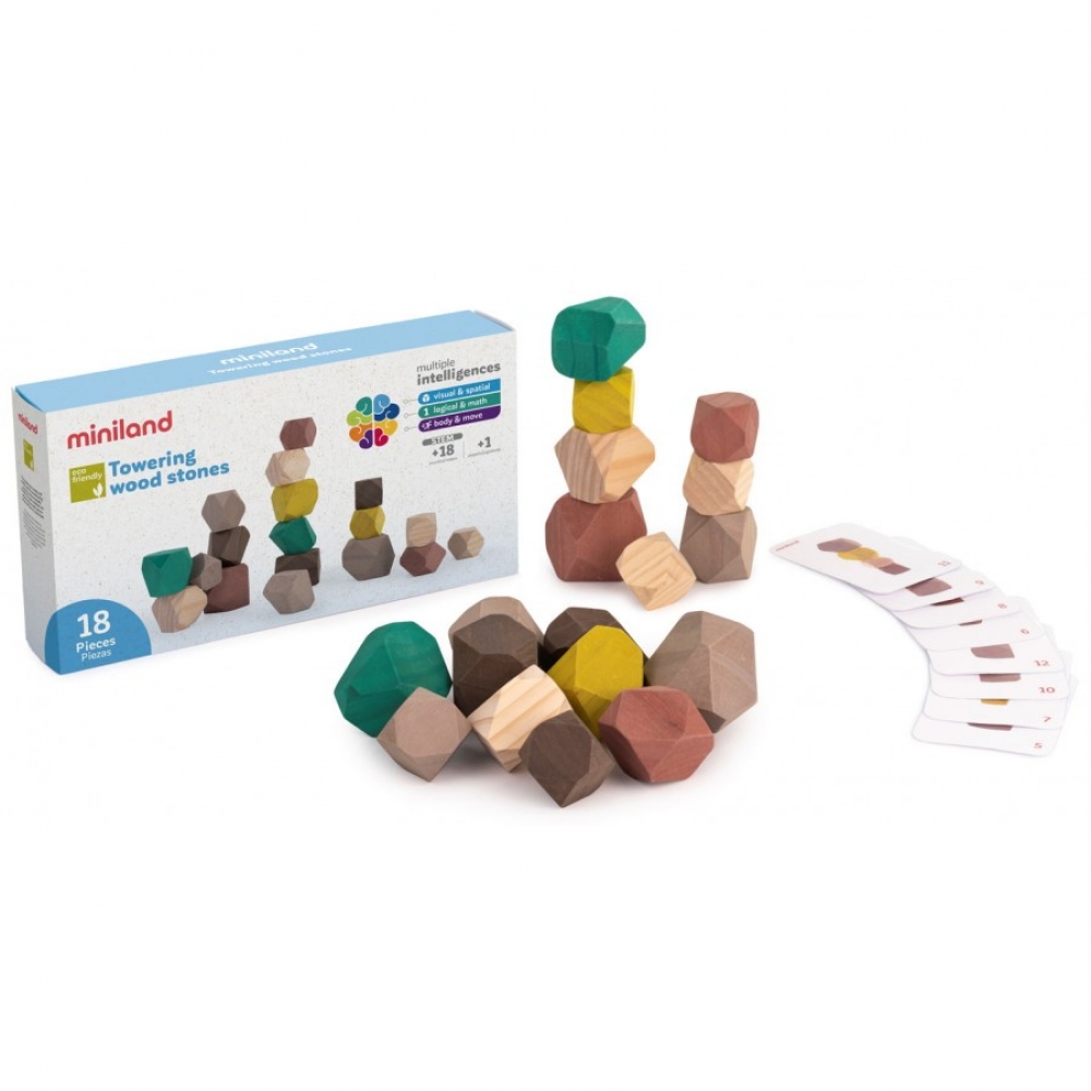 Камінці виготовлені з високоякісного екологічно чистого матеріалу – дерева, відмінно відшліфовані та пофарбовані. Набір має міжнародний сертифікат FSC.Вік – 3-6 років