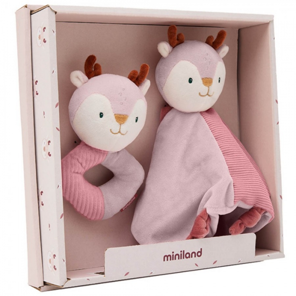 Подарунковий набір для немовляти Miniland «Оленя» (комфортер + брязкальце)