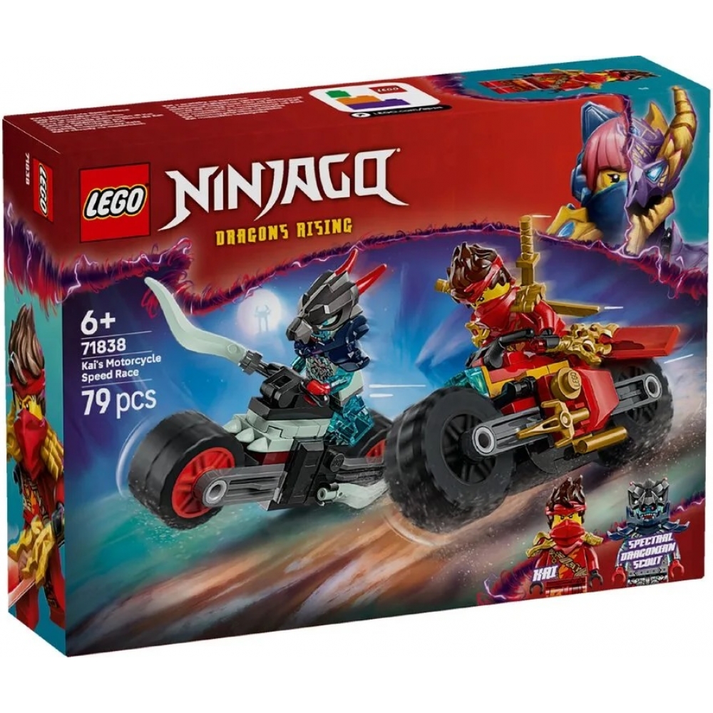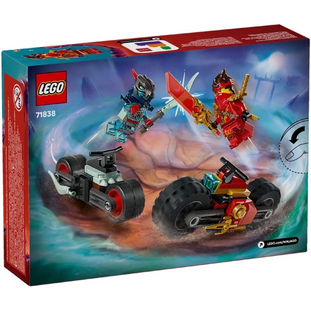 LEGO Ninjago «Швидкісні перегони Кая на мотоциклі» (71838) — компактний набір із двома мотоциклами для динамічної гри. Модель дозволяє відтворювати сцени перегонів і протистояння. У комплект входять дві мініфігурки з аксесуарами. Підходить для швидкого складання та активних ігрових сценаріїв.