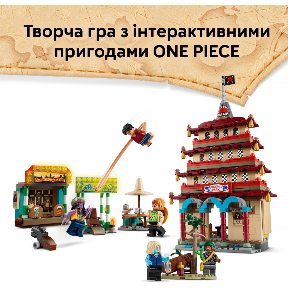 «Битва в парку Арлонг» від LEGO® ONE PIECE (75638) – це інтерактивна іграшка для дітей, які люблять екшн та пригоди. Цей високоякісний набір LEGO ONE PIECE, що відтворює епічну битву між Піратами Солом'яного Капелюха та Піратами Арлонга, стане чудовим аніме-подарунком для хлопчиків та дівчаток віком від 9 років.