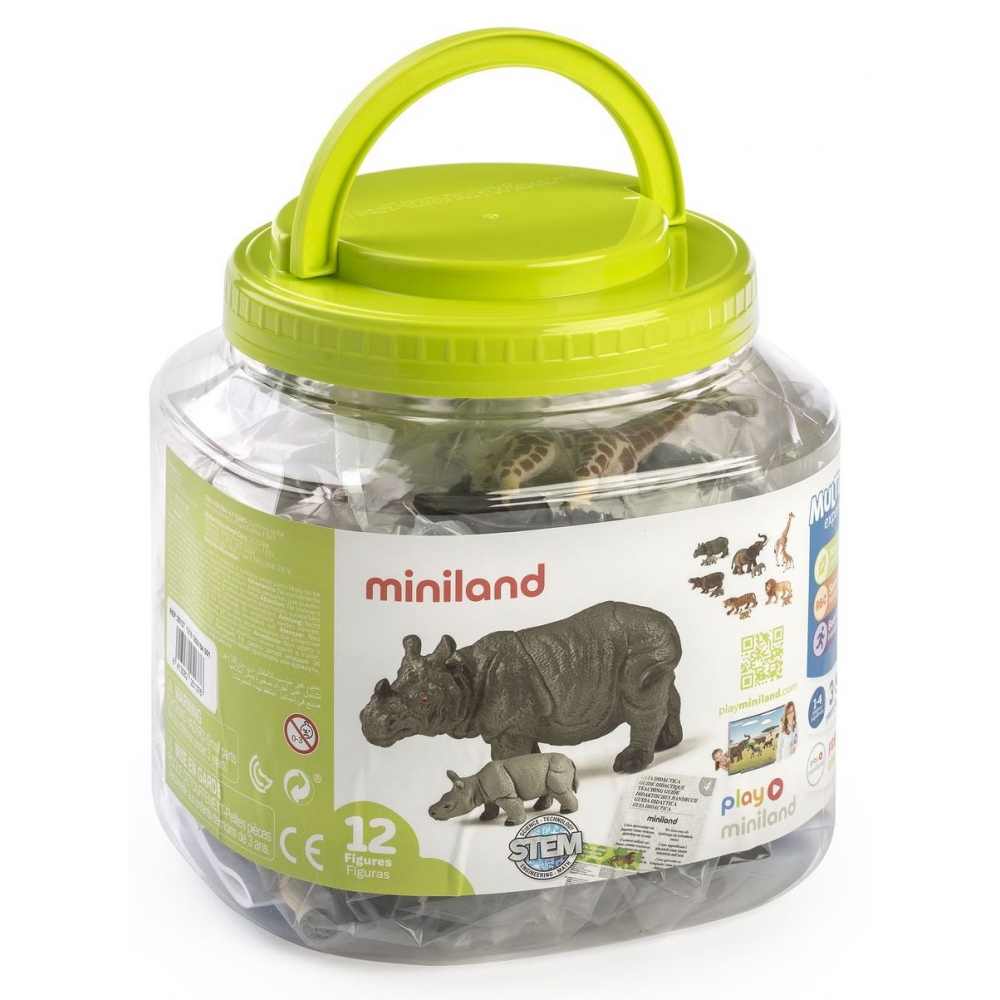 Фігурки тварин у наборі Miniland Дикі тварини з дитинчатами (12 фігурок)