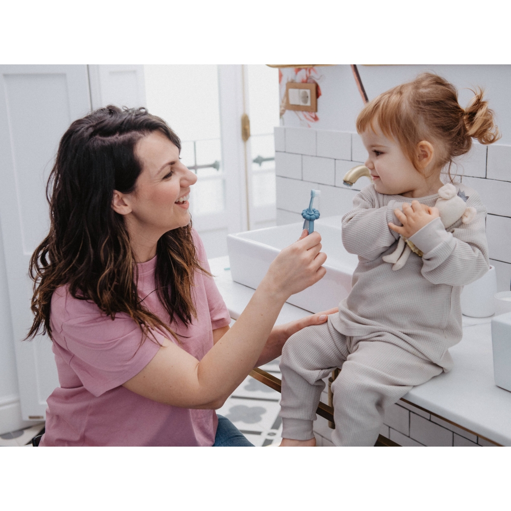 Зубна щітка Stage 1 рекомендована для дітей від появи перших зубів і до 2 років. Завдяки м’якій нейлоновій щетині та ергономічній силіконовій основі, вона делікатно очищує перші зубчики, водночас масажуючи ясна та допомагаючи зменшити дискомфорт у період прорізування.
