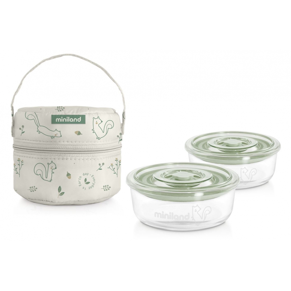Набір скляних контейнерів із термосумкою Miniland Pack-2-Go NaturRound Chip