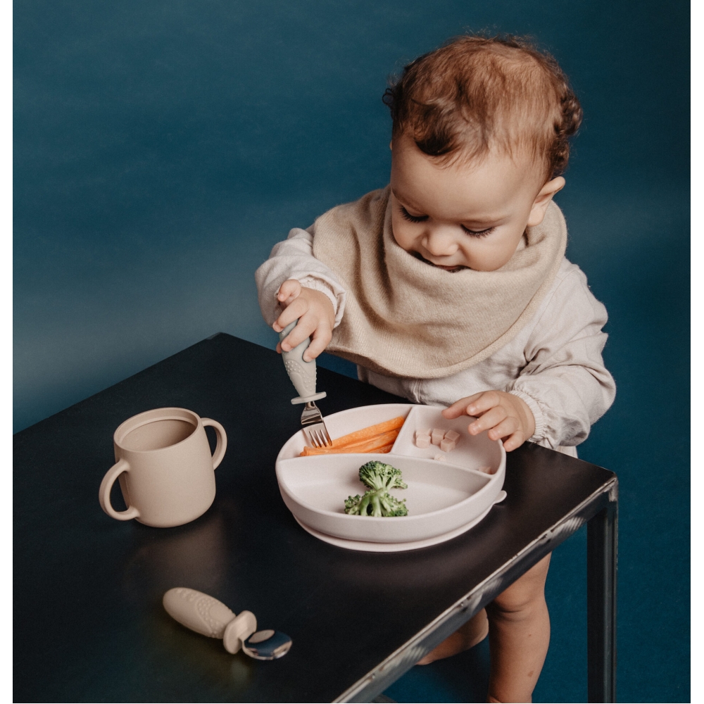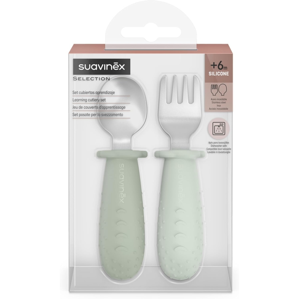 Набір столових приборів Suavinex Colour Essence створений для того, щоб супроводжувати дитину на шляху до самостійного харчування. Ергономічний дизайн допомагає малюку поступово навчатися користуватись справжніми приборами без допомоги дорослих.