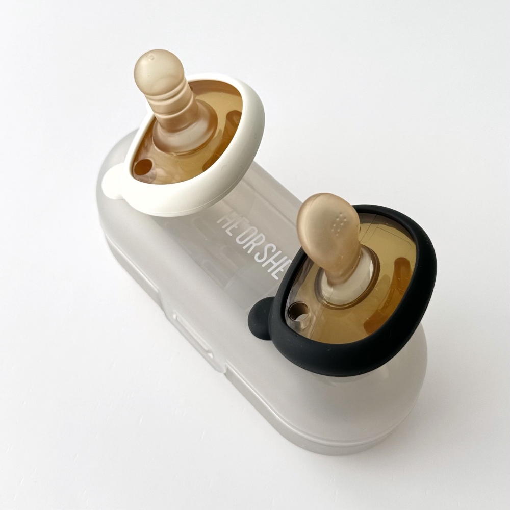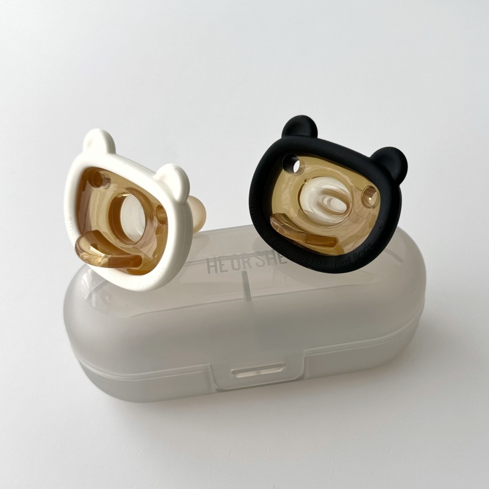 У наборі вам доступні 2 пустушки і контейнер для їх зберігання.