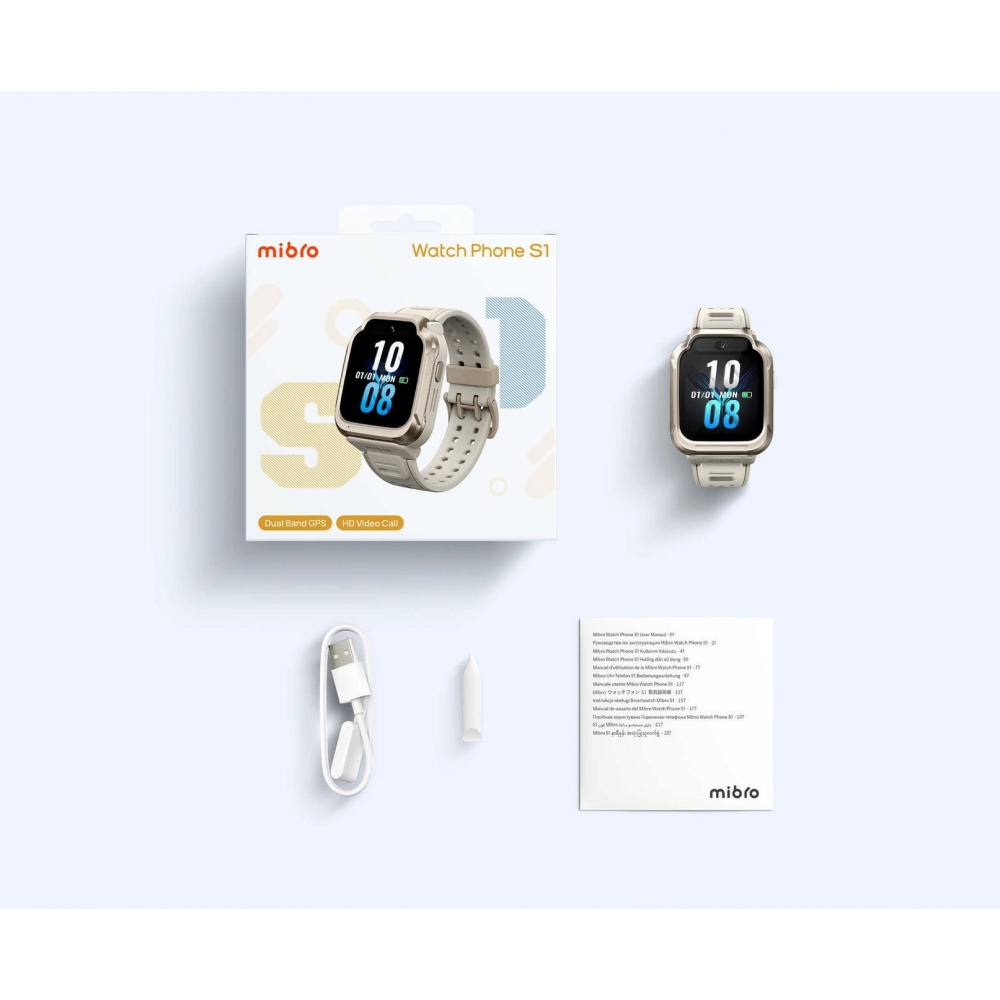 Дитячий годинник-телефон Mibro S1, 1.68", 360x390, GPS, 8MP+5MP, 900мА·год, 2АТM, пісочно-золотий, арт. XPSWY007D