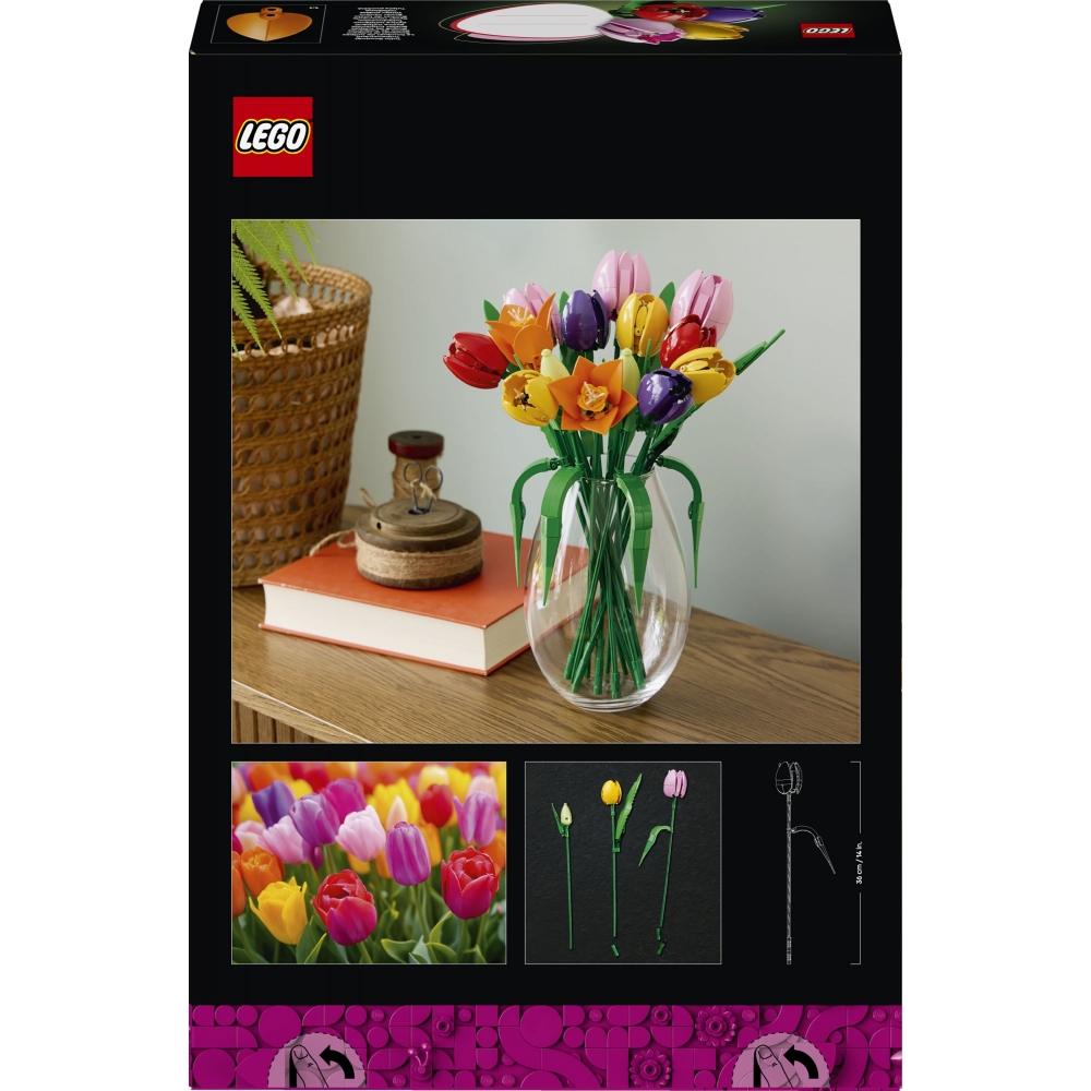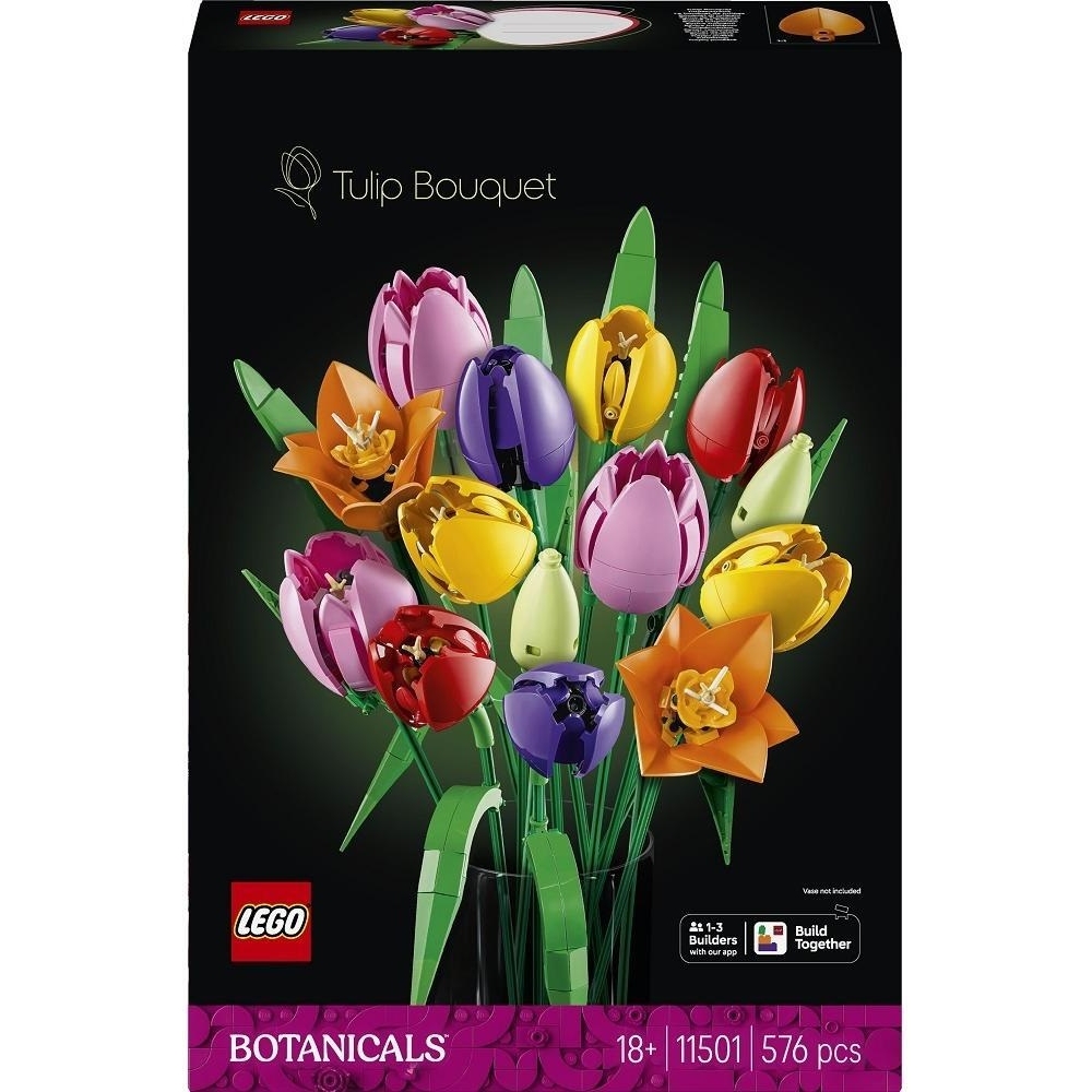 Додайте чудовий квітковий декор до свого дому за допомогою набору для конструювання LEGO® Botanicals Tulip Bouquet (11501) для дорослих. Цей букет LEGO, що втілює радість та оптимізм весни, містить 5 різновидів тюльпанів різних кольорів та стадій цвітіння. Пориньте у красу квітів, створюючи яскраві зелені бутони, фіолетові закриті тюльпани та червоні, жовті та рожеві відкриті тюльпани, а також зелене листя для додаткової автентичності. Набір для конструювання квітів також включає регульовані стебла, які дозволяють легко складати тюльпани в унікальний букет LEGO.