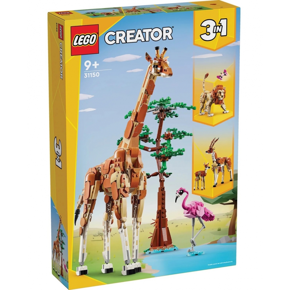 Дівчатка й хлопчики віком від 9 років можуть вирушити у подорож у дивовижне сафарі завдяки набору LEGO® Creator Дикі тварини сафарі (31150). Діти можуть насолоджуватися творчою грою завдяки іграшковим тваринам, зокрема іграшковому жирафу з рухомими ногами, довгою шиєю, хвостом і вухами, який стоїть поруч з невеликим деревом із кубиків й іграшковим фламінго. Всі три моделі стануть принадним доповненням інтер'єру щойно гра закінчиться.