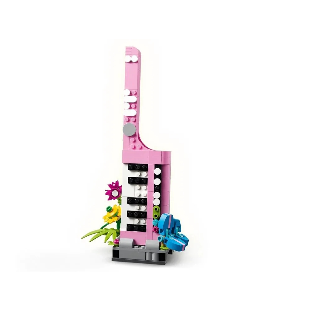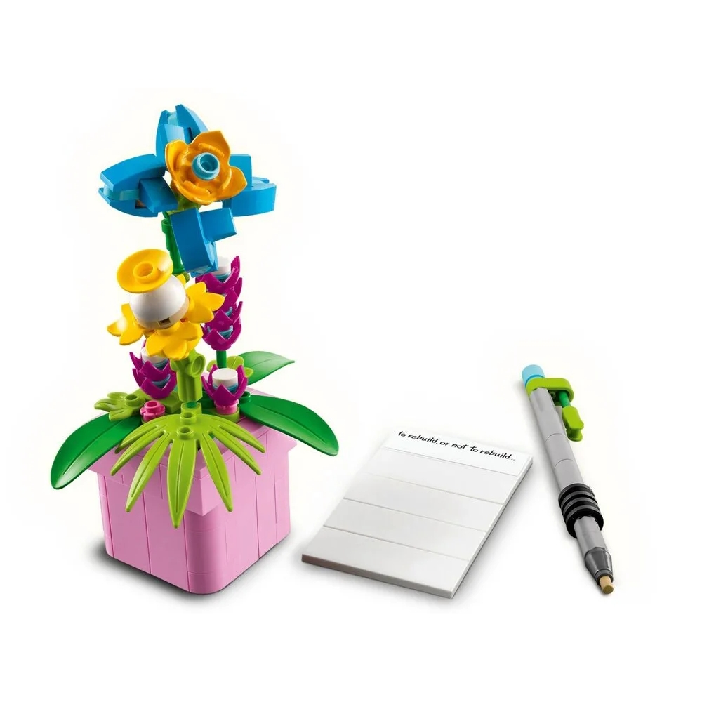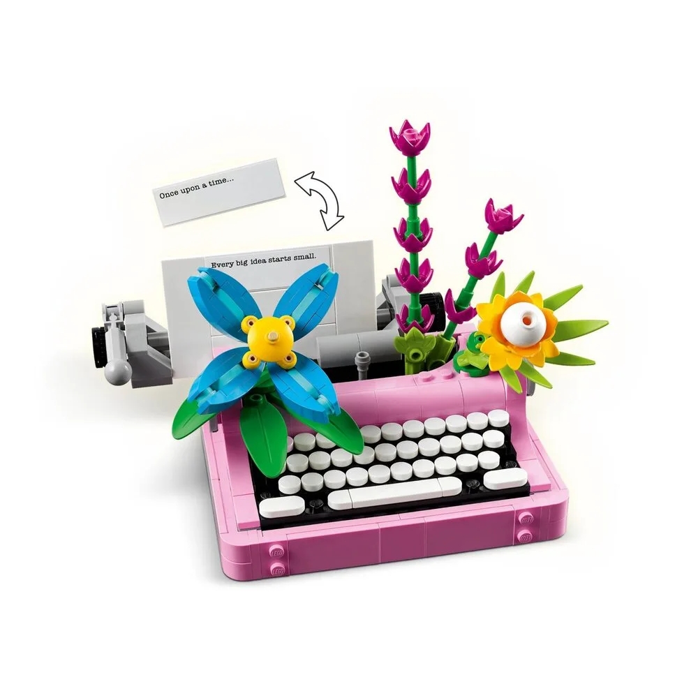 Конструктор LEGO Creator «Друкарська машинка з квітами» 31169 — це набір із серії 3-в-1, що дозволяє зібрати одну з трьох різних моделей. Основна з них — вінтажна друкарська машинка з рухливою клавіатурою, декоративними квітами та «аркушем паперу» з кубиків. Альтернативні збірки включають клавітару на підставці з квітами і горщик для квітів із блокнотом та ручкою. Під час складання розвиваються просторове мислення та творчі навички.