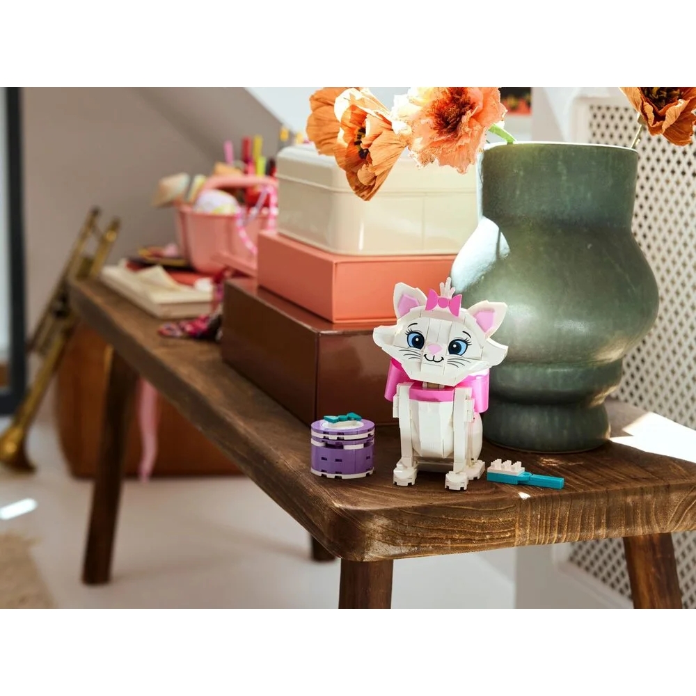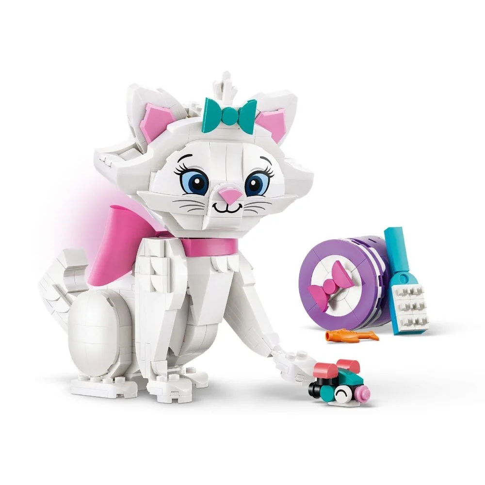 LEGO Disney 43286 — це чарівний набір для дітей від 7 років, присвячений милій кішці Марі з мультфільму «Коти-аристократи». Дитина може зібрати рухому фігурку Марі з поворотною головою, лапками, хвостом та вушками, а також додати рожевий бант, коробку для подарунків, мишку, щітку та рибку для сюжетних ігор. Це ідеальний спосіб розвивати уяву, грати в історії про аристократичних котиків та використовувати модель як милий декор кімнати. Додаток LEGO Builder з 3D-інструкціями полегшує складання. Чудовий подарунок для фанатів Disney, тварин та творчих ігор.