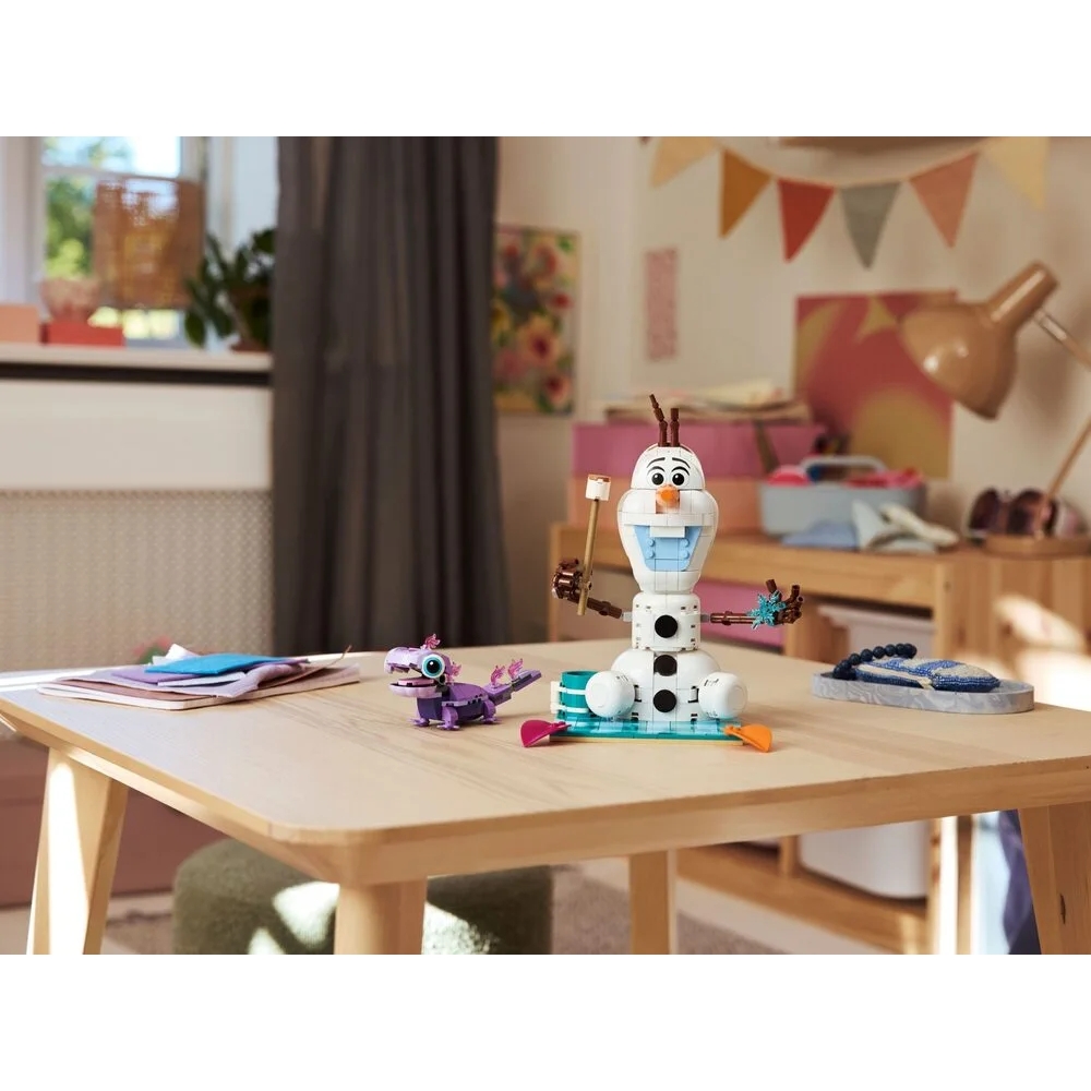 LEGO Disney 43287 — це веселий набір для дітей від 7 років з рухомими фігурками Олафа (сніговика) та Бруні (саламандри) з мультфільму «Крижане серце». Діти збирають яскраву ковдру для пікніка, де персонажі можуть «сидіти», плюс аксесуари: гарячий шоколад, маршмеллоу на паличці, сніжинку та інші милі деталі для сюжетних ігор. Після гри модель стає чарівним декором кімнати в стилі Frozen. Додаток LEGO Builder з 3D-інструкціями робить складання простим і захоплюючим. Ідеальний подарунок для фанатів Олафа, Бруні та літніх пригод у зимовому світі.