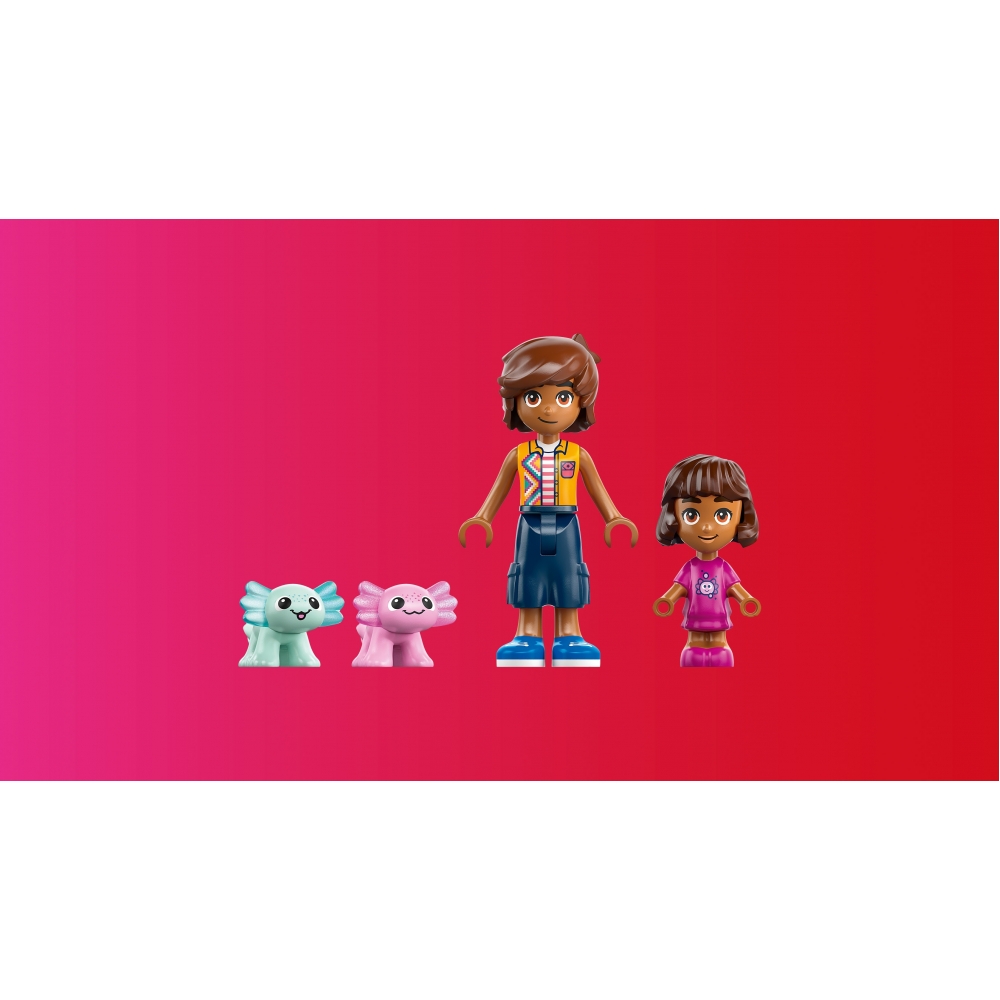 LEGO Friends 42681 — набір для дітей від 5 років із човном у формі аксолотля, що має привітне обличчя та хитає хвостом. У комплекті одна мінілялька, одна мікролялька, два мініаксолотлі, весла, два рятувальні жилети, сидіння для персонажів, рослини, квіти та вода для створення природного середовища. Діти можуть розігрувати сюжети про водні пригоди, плавання та догляд за аксолотлями. Додаток LEGO Builder з 3D-інструкціями спрощує процес складання. Підходить для розвитку уяви через рольові ігри про тварин та природу.