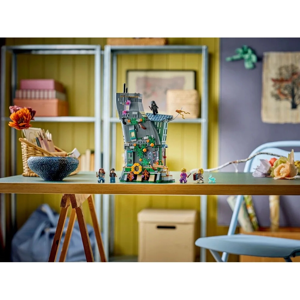 LEGO® Harry Potter™ 76467 Будинок Луни Лавґуд відтворює ексцентричне помешкання з фільму «Гаррі Поттер і смертельні реліквії». У наборі — 5 мініфігурок, деталізовані кімнати та світловий кубик LEGO для проєкції зображення з «Казки про трьох братів». Можна оглянути спальню Луни, друкарню Ксенофілія та кухню з рухомими меблями. Додано Заєць-патронус Луни з колекційної серії. Інструкції доступні також у додатку LEGO Builder, у наборі 764 деталі.