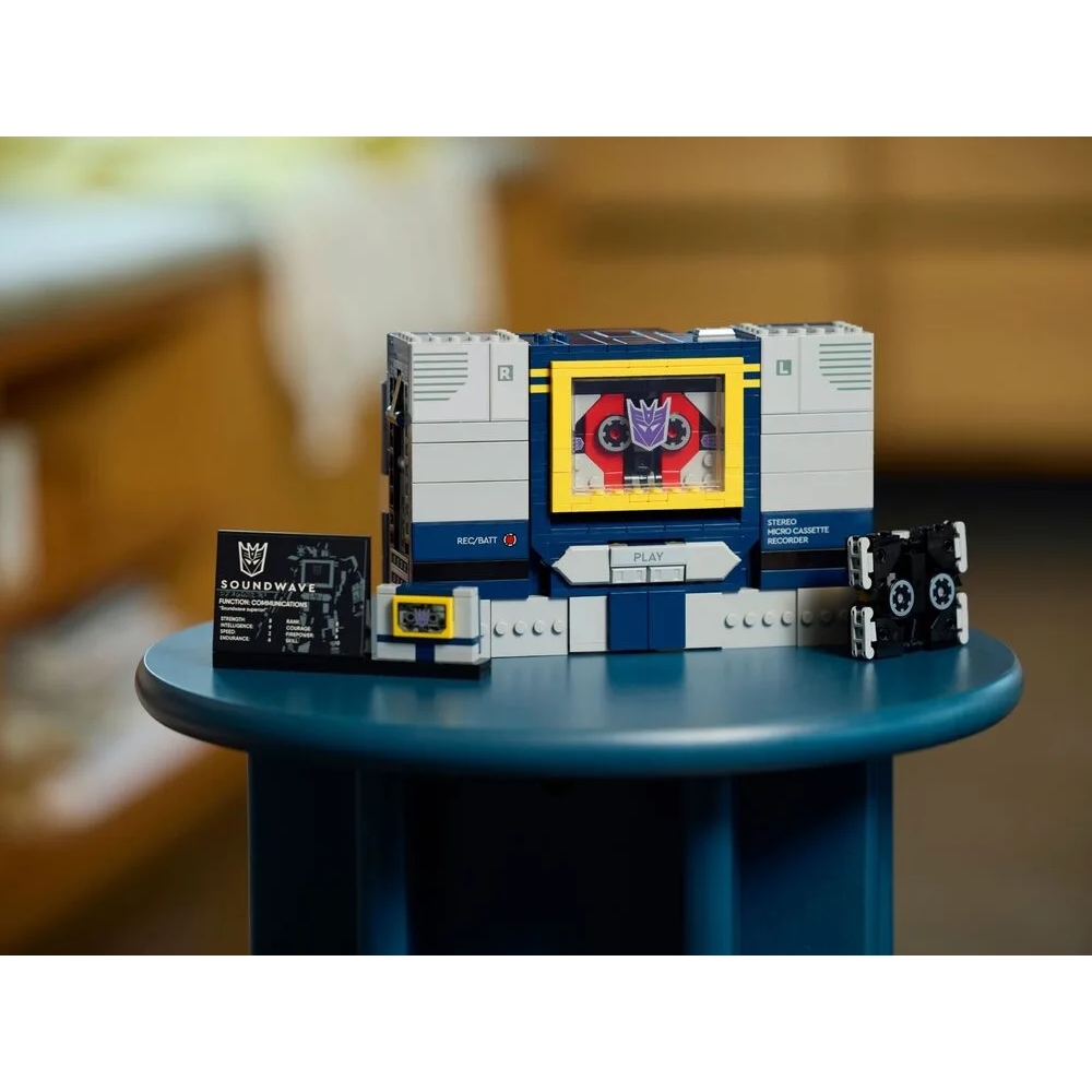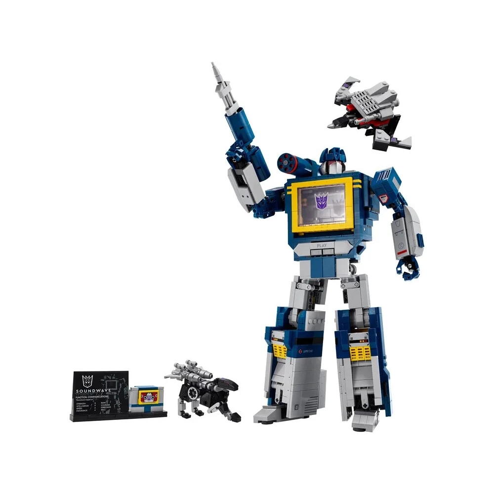 Конструктор LEGO Icons Transformers «Саундвейв» 10358 відтворює культового персонажа у форматі трансформованої моделі. Конструкція дозволяє змінювати форму між роботом і пристроєм. Деталізований дизайн підкреслює характерні риси персонажа. Модель орієнтована на поєднання збірки та демонстрації. Тематика відповідає всесвіту Transformers.