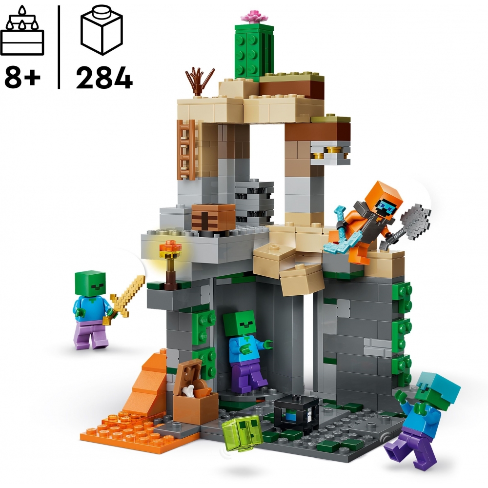 Конструктор LEGO Minecraft Підземелля зомбі 21587 переносить у світ Minecraft із атмосферою напруги та творчості. Набір включає мініфігурки, ворогів і функціональні елементи для сценічної гри. Обертовий механізм та деталі з обвалом додають динаміки кожній сцені. Конструктор стимулює творче мислення й сюжетну уяву.