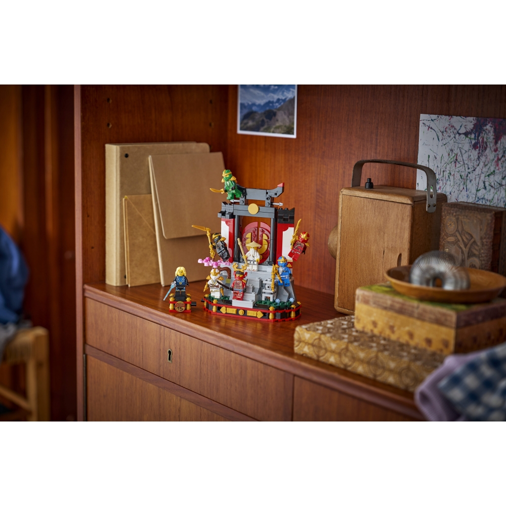 Хлопчики, дівчатка та ностальгічні шанувальники ніндзів віком від 14 років можуть відсвяткувати 15-ту річницю серіалу LEGO® NINJAGO® за допомогою набору «Модель персонажів ніндзя. 15-та річниця» (71866), що містить 8 мініфігурок. Цей чудовий іграшковий монастир ніндзів має сходи, ворота, що відчиняються, кам'яний ліхтар, вишневе дерево в цвіту та чайну кімнату позаду з наліпками, що зображують знамениту битву NINJAGO.