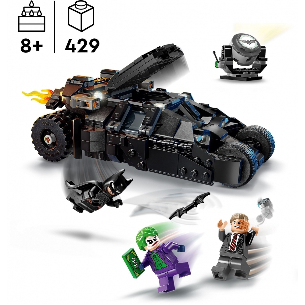 «Бетмен™: Тумблер проти Дволикого™ та Джокера™» (76303) – це весела іграшка для дітей, які люблять Бетмена, транспортні засоби, творчість LEGO® та пригоди супергероїв™. Подаруйте пригоди Бетмена юним супергероям віком від 8 років завдяки цьому високоякісному набору LEGO, в якому представлений культовий Бетмобіль Тумблер™ з класичних фільмів про Темного лицаря™.