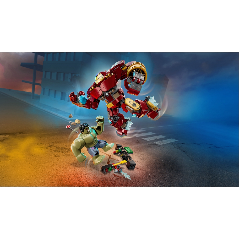 Оживіть події фільму від Marvel Studios «Месники: Ера Альтрона» з набором для конструювання LEGO® Marvel Легендарна битва: Халкбастер vs. Халк (76343) для хлопчиків і дівчаток віком від 9 років. Цей дивовижний набір, що містить мініфігурки Залізної Людини й Халка, а також культову броню «Халкбастер», відкриває дітям безмежні можливості для творчих сюжетних ігор та креативного демонстрування. Залізна Людина бореться з Халком у своїй броні «Халкбастер» на тлі вулиці, заваленої уламками, напівзруйнованих сталевих конструкцій і світлофора, який Халк може використовувати як зброю.