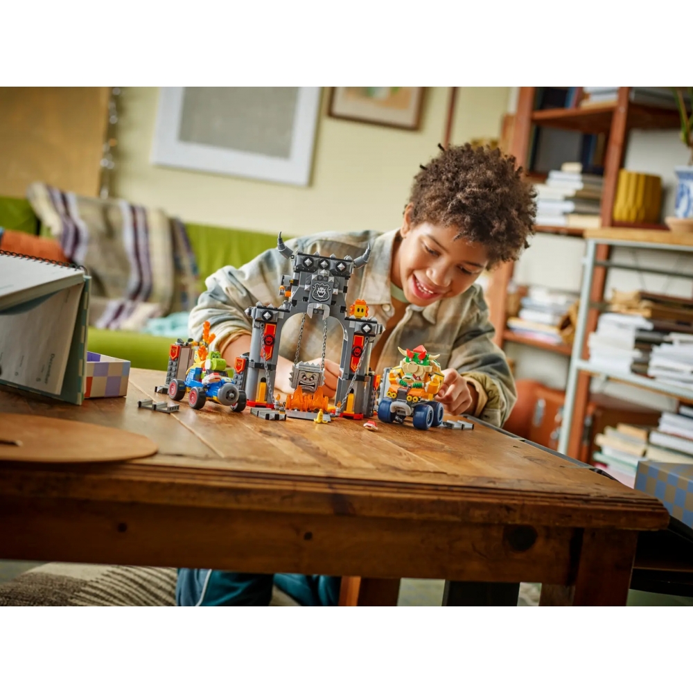 Приготуйтеся до перегонів у Mario Kart™ — Bowser та його замок з набором іграшкового транспортного засобу для перегонів для дітей серії LEGO® Super Mario™ (72039). Блискуча подарункова іграшка з персонажами Nintendo® для хлопчиків, дівчаток і геймерів віком від 9 років.