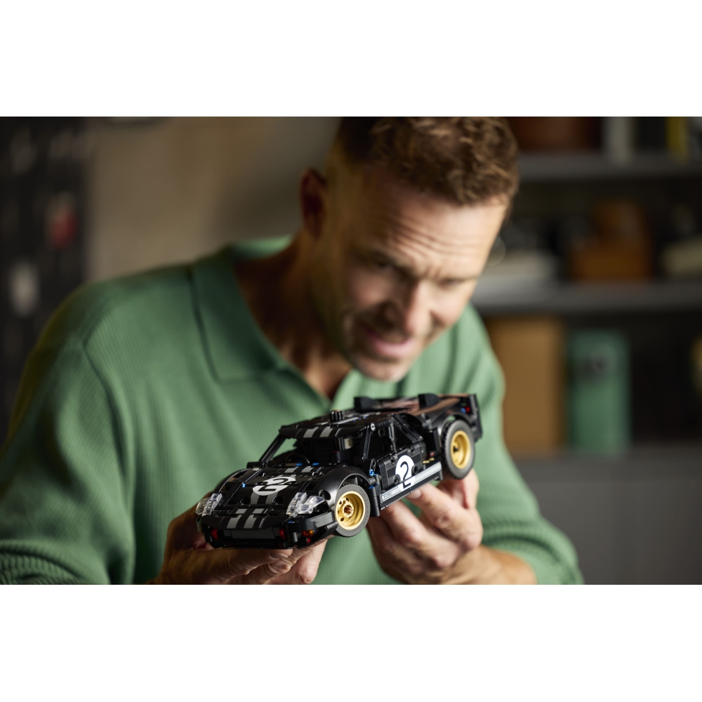 Досягайте перемог і вшановуйте легенду автоспорту з моделлю для дорослих LEGO® Technic Автомобіль для перегонів Ford GT40 MKII 1966 року (42223). Любителі автомобілів, фанати перегонів і завзяті будівельники віком від 18 років можуть відчути дух найпрестижніших у світі перегонів на витривалість завдяки цій реалістичній версії моделі культового ретроавтомобіля. Із задоволенням досліджуйте деталізовані особливості набору. Для кермування використовуйте ручку зверху автомобіля. Роздивіться двері, що відчиняються, та помилуйтеся чорно-срібною лівреєю, натхненою справжнім чемпіонським автомобілем.