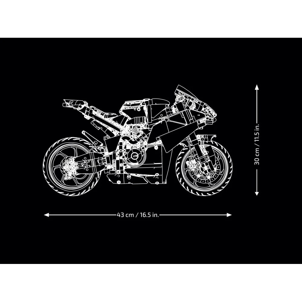 Конструктор LEGO Technic Ducati Panigale V4 S Motorcycle 42202 пропонує масштабну модель легендарного спортивного мотоцикла Ducati на основі інженерних рішень LEGO Technic. Набір містить 1 603 деталі для детальної побудови підвісок, рульового управління та коробки передач із трьома швидкостями (плюс «нейтраль»). Модель оснащена ланцюговим приводом, що з’єднує двигун V4 із заднім колесом. Готовий мотоцикл чудово виглядає на стенді та підходить для колекції й демонстрації.