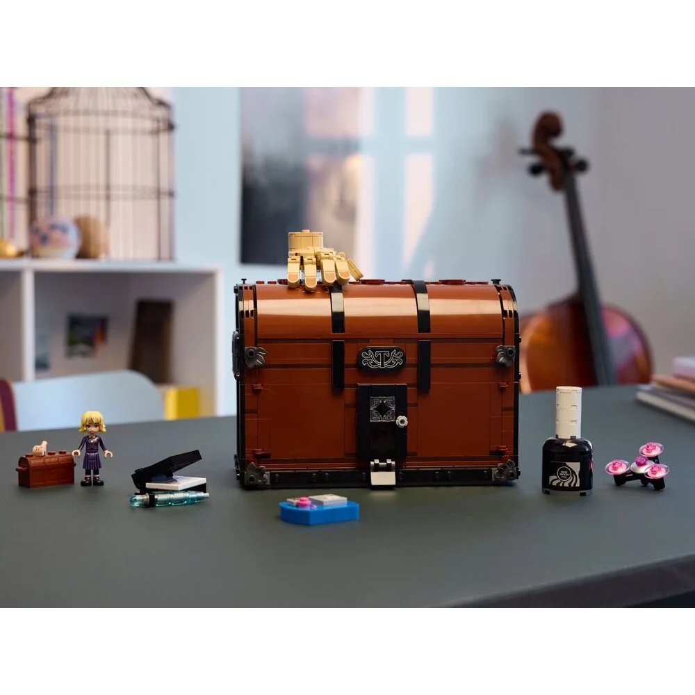 Конструктор LEGO Wednesday «Квартира Речі» 76785 представляє компактну будівлю-схованку у формі сундука, що відкривається для гри та демонстрації. Модель містить 828 деталей та включає фігурки Речі й Енід Сінклер для сюжетної взаємодії. Усередині приховані інтерактивні елементи — ліжко, крісло та аксесуари, що розширюють сценарії гри. Закритий сундук із декоративними деталями чудово вписується на полиці як декор.
