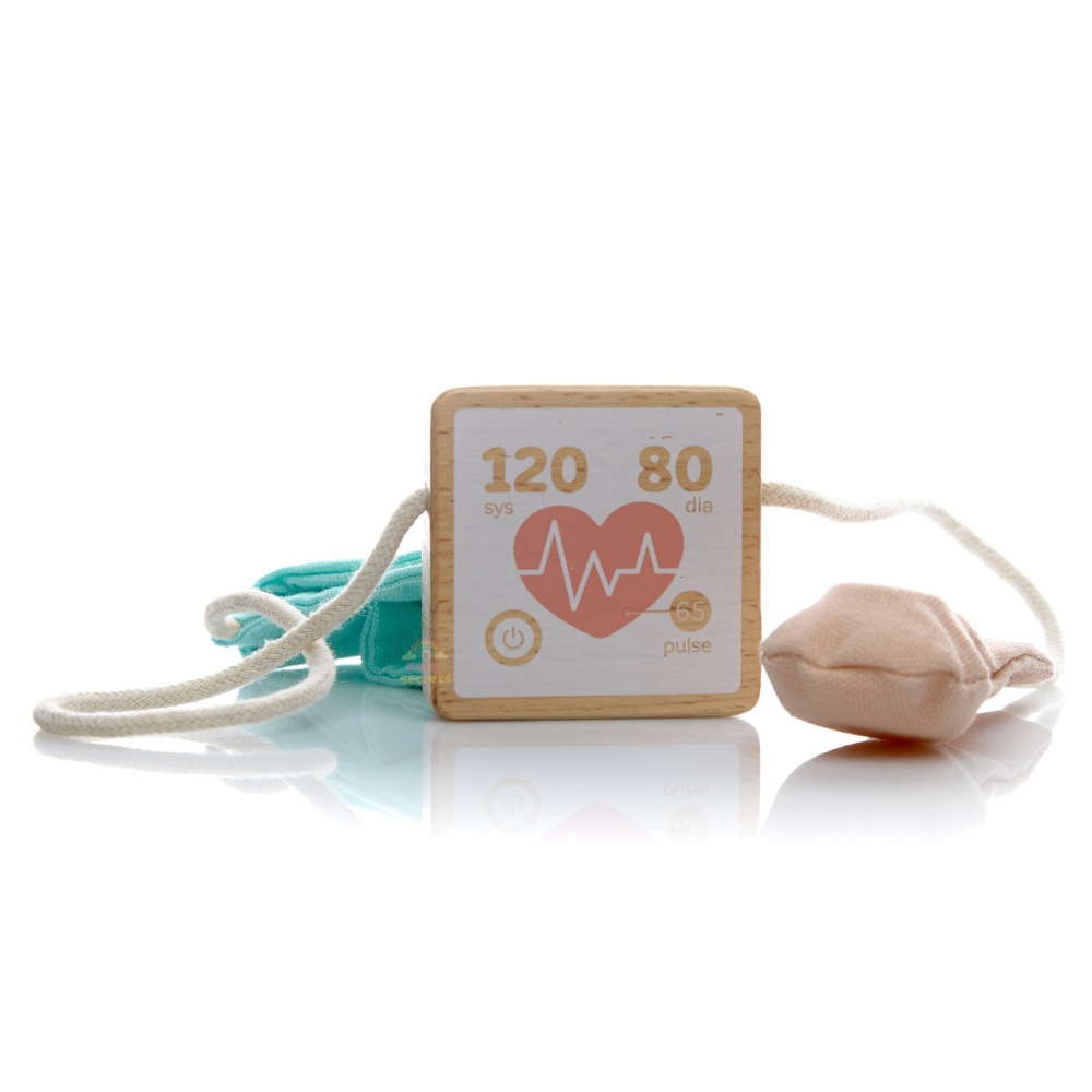 • У компактній текстильній сумочці дитина знайде все необхідне: тонометр для вимірювання артеріального тиску; стетоскоп, що дасть змогу слухати сердечко та дихання; неврологічний молоточок для перевірки рефлексів; шприц, щоб робити укольчики; термометр для контролю температури тіла та тюбик із ліками.