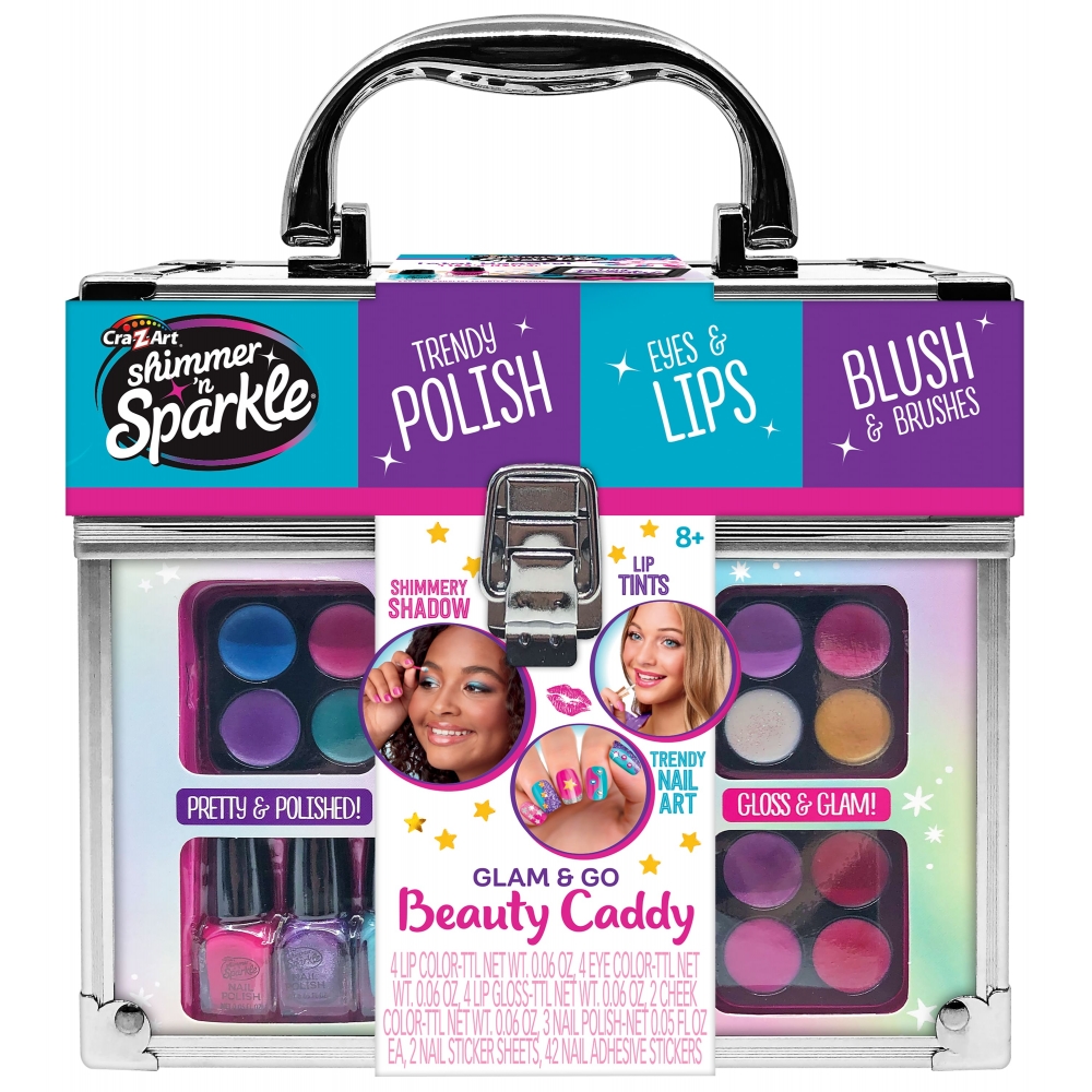 Набір дитячої косметики Cra-Z-Art Glam and Go Beauty Caddy являє собою компактний б’юті-кейс із декоративною косметикою та аксесуарами для творчих ігор. Формат переносного кейса дозволяє зберігати всі елементи в одному місці та зручно транспортувати набір. Палітра містить різні відтінки для макіяжу губ, очей і щік, а також засоби для створення манікюру. Набір використовується під час творчих ігор, свят або тематичних зустрічей.