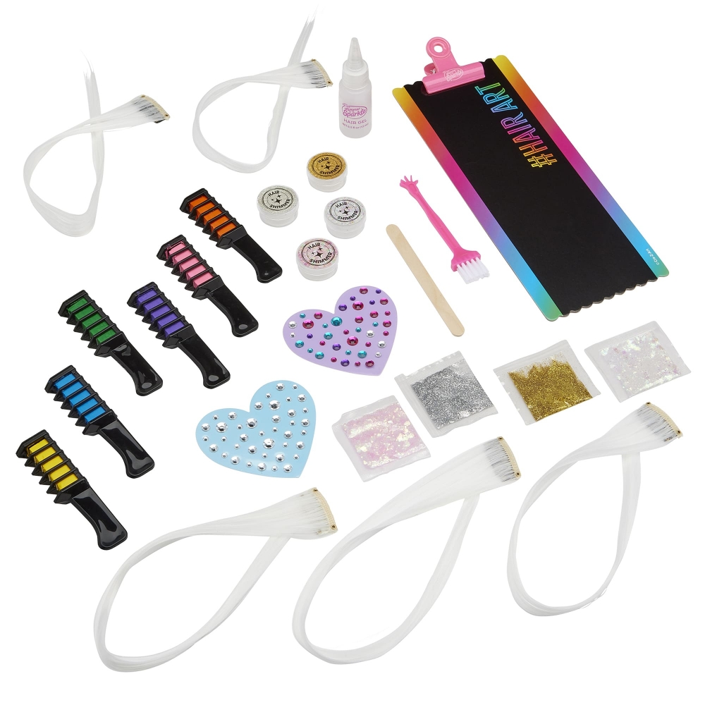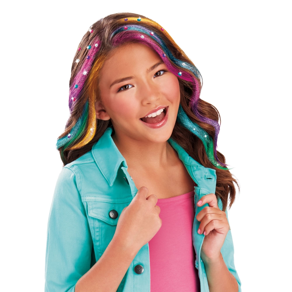 Набір для творчості Cra-Z-Art Color FX призначений для тимчасового декорування волосся та створення зачісок із кольоровими пасмами. У наборі передбачені гребінці з крейдяним пігментом, накладні пасма, декоративні елементи та аксесуари для оформлення зачісок. Формат набору дозволяє експериментувати з кольором і декоративними деталями під час створення різних образів.