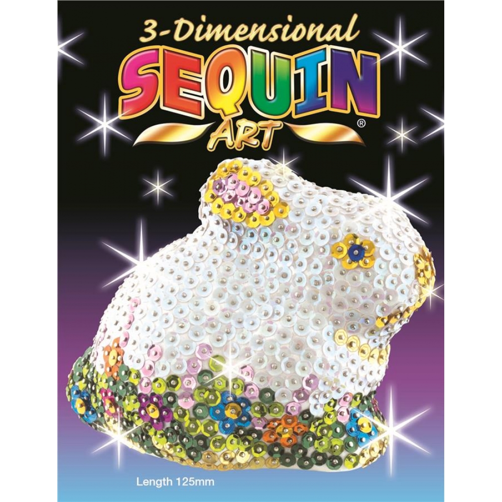 Блискучий кролик - вражаюча тривимірна фігурка, покрита блисківками. Незвичайний набір для творчості Sequin Art 3D зацікавить дітей та дорослих. Всі необхідні матеріали та інструменти в комплекті, не потрібно нічого додаткового. Зокрема, в наборі знайдете: блискітки різних кольорів, шпильки, форму-основу з пінопласту, інструкція. Процес виготовлення тривимірної фігурки нескладний і одночасно дуже захоплюючий. Готовий виріб буде радувати око; яскравою блискучою фігуркою можна грати, або ж подарувати рідним як сувенір. Створити тривимірну фігурку дуже легко. Потрібно прикріпити блискітки до готової пенопластової форми за допомогою шпильок. Набір рекомендований для дітей від 8 років. Висота фігурки 12.5 см.