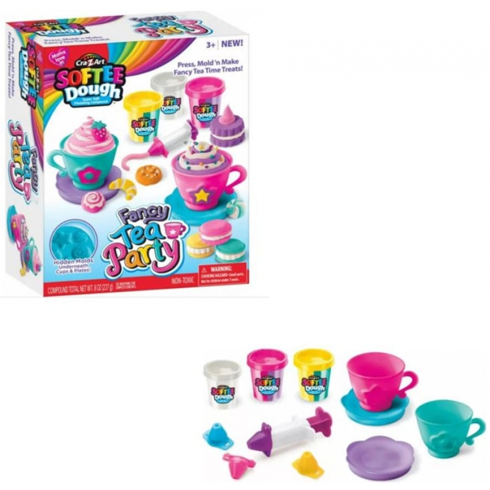 Тісто для ліплення Cra-Z-Art Святкове чаювання використовується для творчих занять і створення фігурок із моделювальної маси. У наборі передбачені кольорове тісто Softee Dough, формочки та інструменти для створення тематичних елементів. Формат набору дозволяє моделювати десерти, чайний посуд і декоративні деталі під час сюжетної гри.