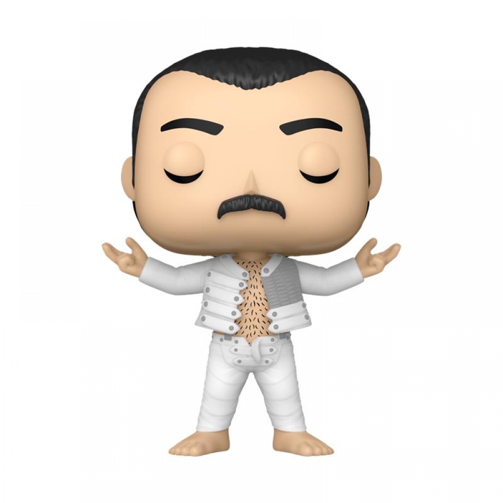 Funko POP! Rocks: Queen — Фредді Мерк'юрі (I Was Born to Love You): вінілова колекційна фігурка легендарного фронтмена Queen у фірмованому стилі Funko POP!. Фредді в культовому образі з пісні "I Was Born to Love You" — білий костюм із підвернутими рукавами, впізнавана постава рок-легенди. Поставляється у фірмованій вікончатій коробці. Офіційно ліцензований продукт Funko.
