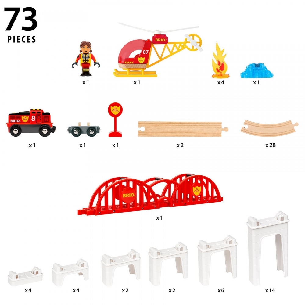 У комплекті є потужний локомотив на батарейках із вагоном для вантажів, гелікоптер, пожежний пункт і фігурка рятувальника з аксесуарами — усе, що потрібно для динамічної гри та нових історій. Малюк зможе експериментувати зі швидкістю, висотою та простором, розвиваючи фантазію і просторове мислення.