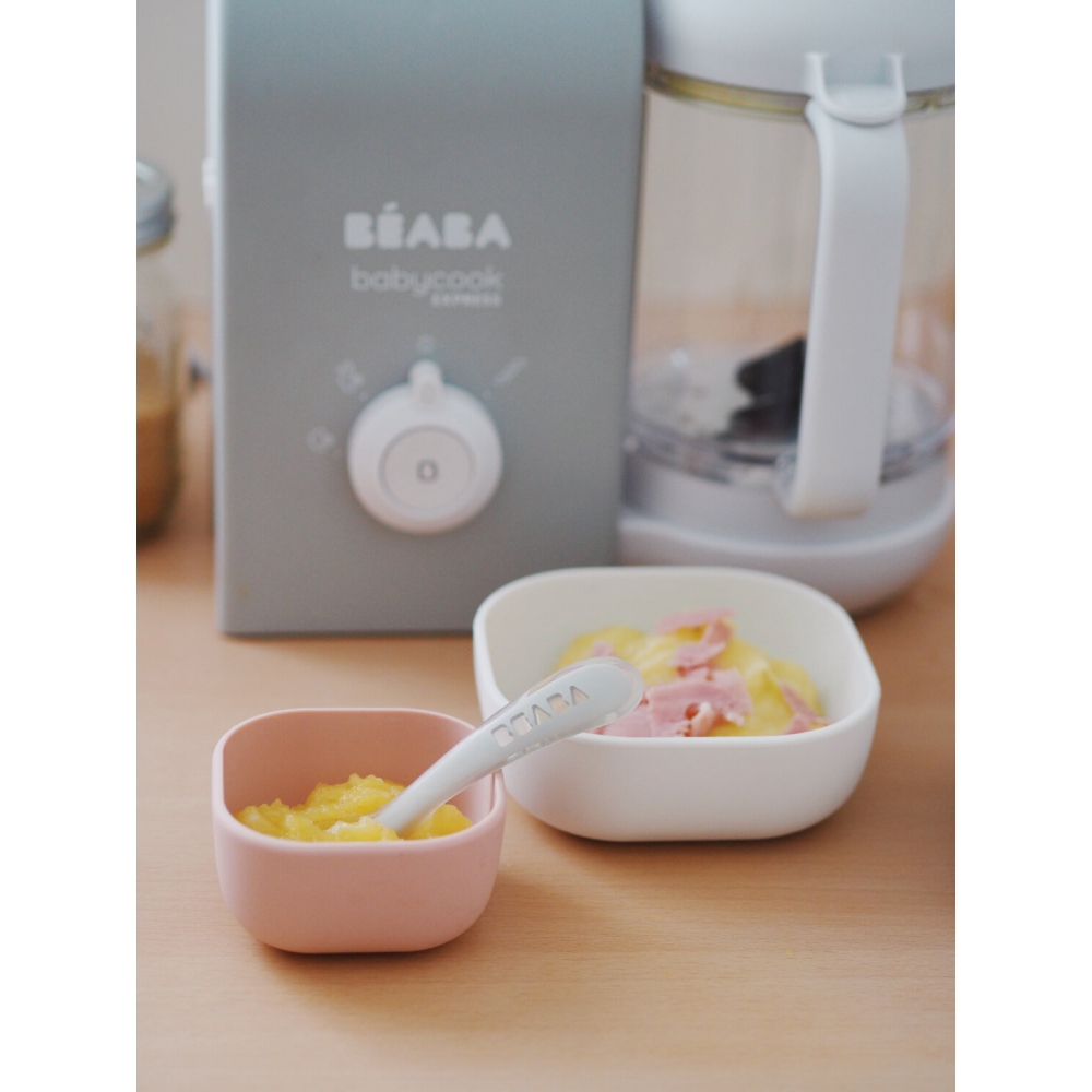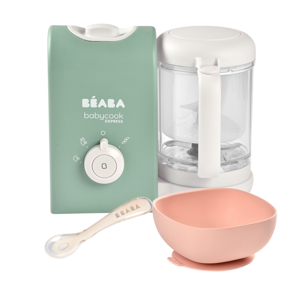 Комплект створений для комфортного та безпечного початку прикорму. У наборі — пароварка-блендер Babycook Express, силіконова миска на присосці об’ємом 350 мл та силіконова ложка