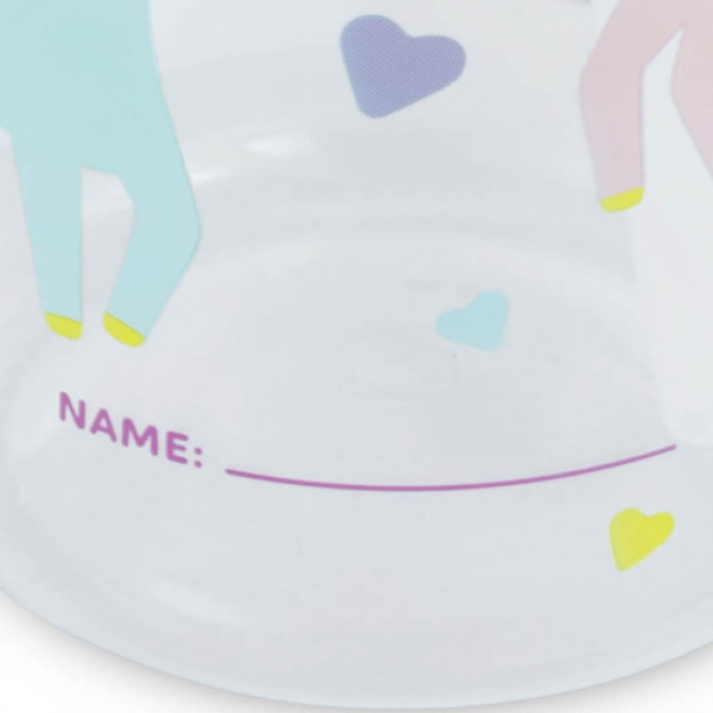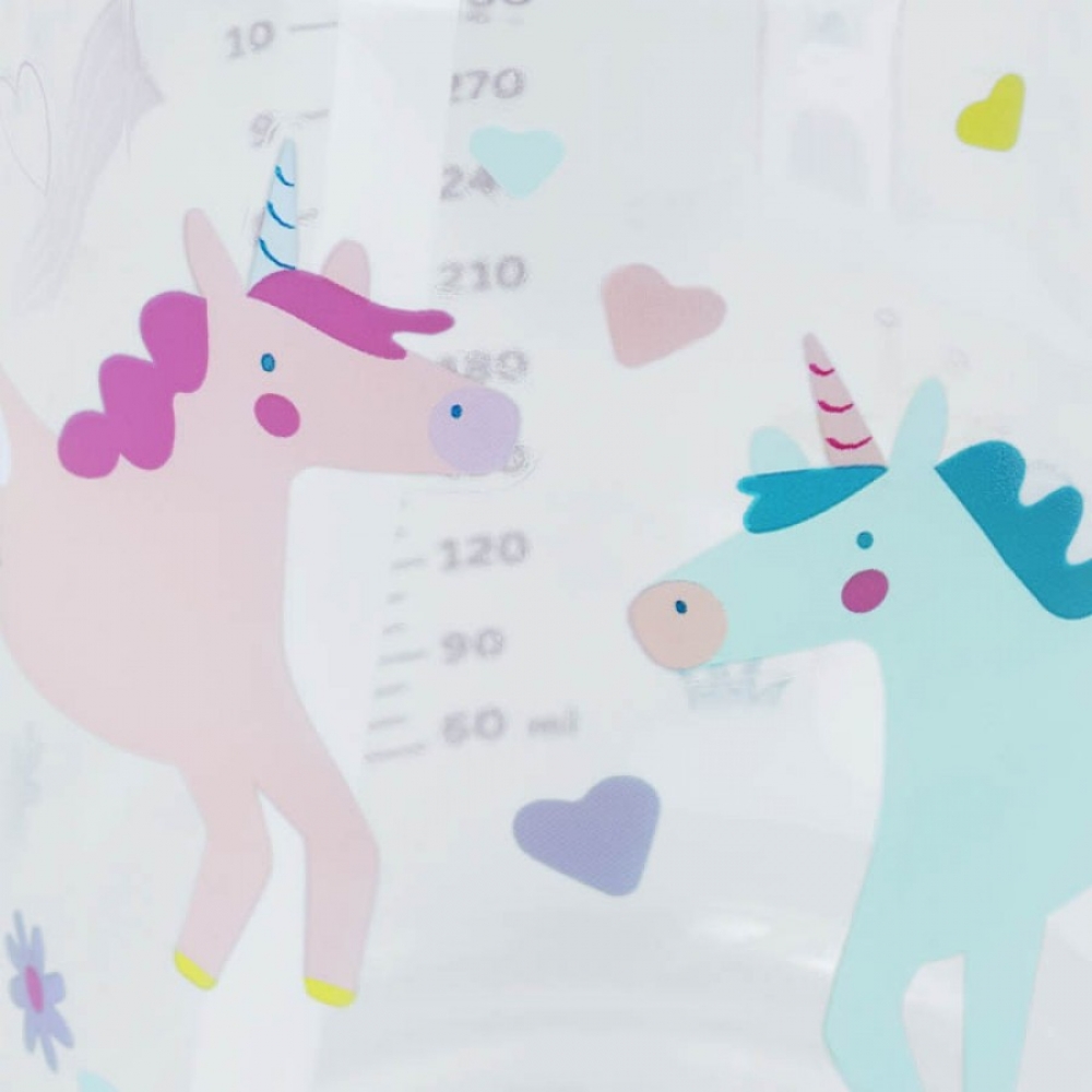 На корпусі є мірна шкала в мілілітрах для зручного контролю за обсягом рідини. Також передбачено місце для написання імені дитини, що допомагає уникнути плутанини у навчальних закладах та інших закладах.