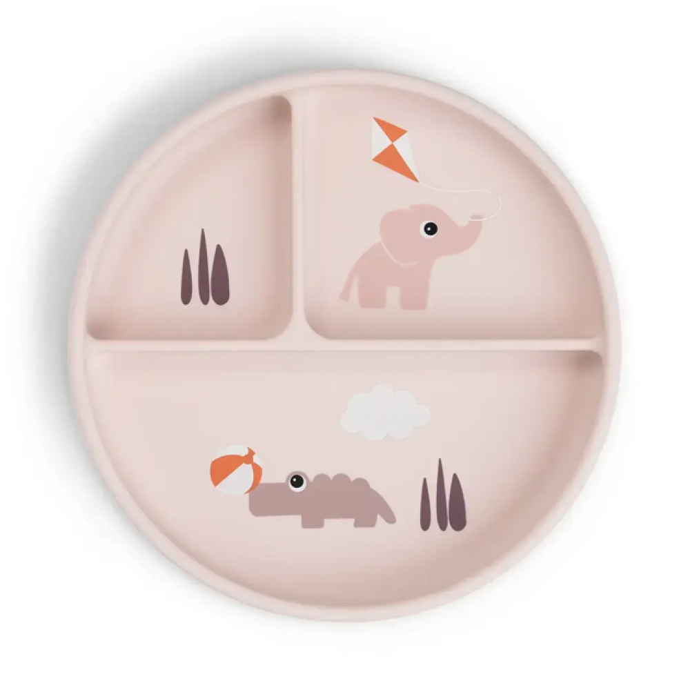 Секційна тарілка Done by Deer серії Stick & Stay у пудровому кольорі лінійки Playground — це практичний і безпечний аксесуар для годування, виготовлений із 100% харчового силікону. Виріб прикрашений зображеннями слоника Elphee та крокодила Croco і має надійну основу-присоску, яка запобігає ковзанню, перевертанню чи падінню тарілки під час їжі. Розподіл на кілька відділень дозволяє зручно сервувати різні види страв, що допомагає малюку краще відчувати смаки окремих продуктів. Тарілка є надзвичайно міцною, витримує температури від -40°C до 230°C, підходить для миття в посудомийній машині та використання в мікрохвильовій печі.