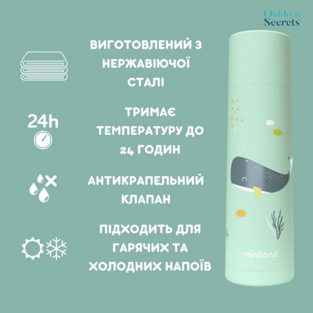 Термос питний Miniland Ocean Whale 500 мл бірюза
