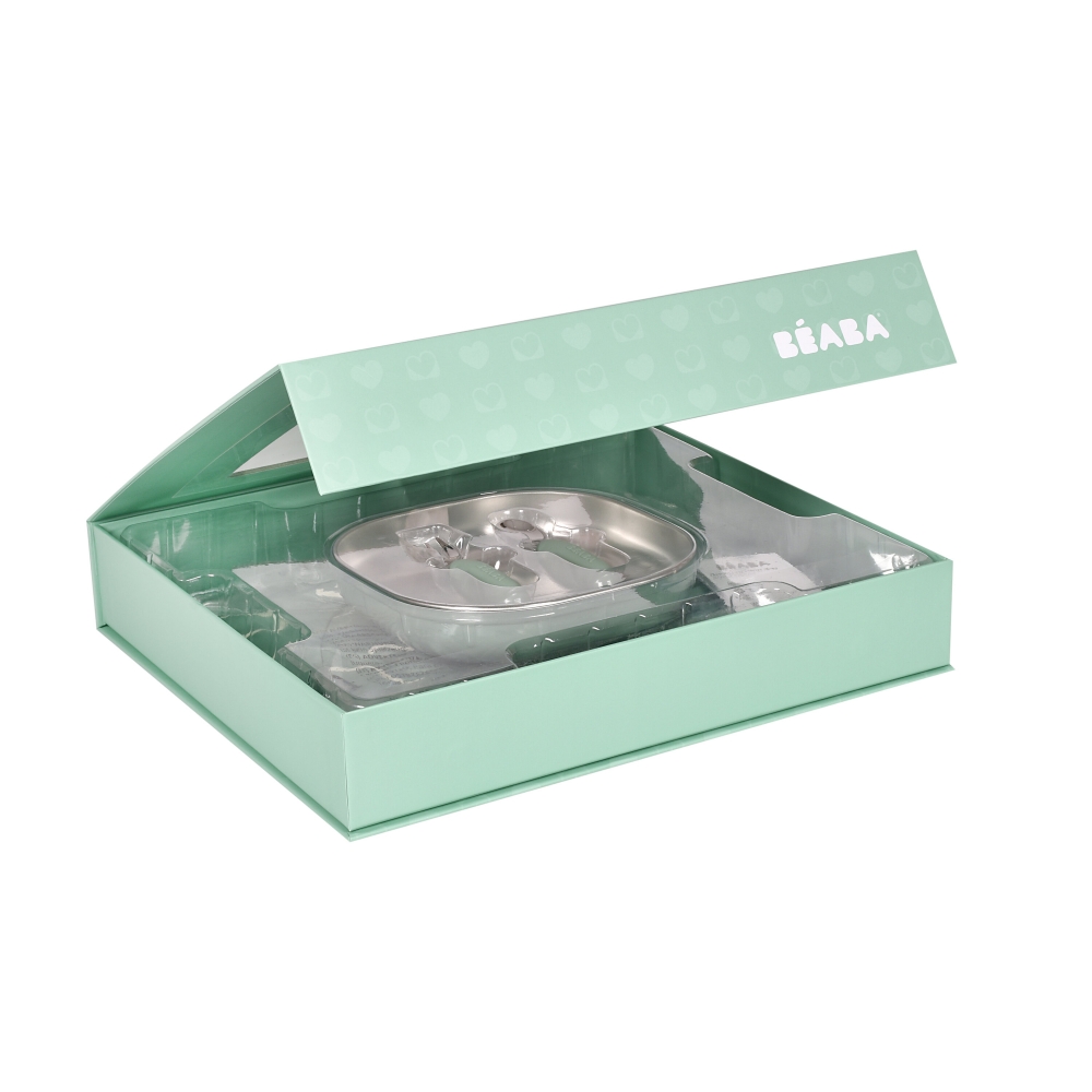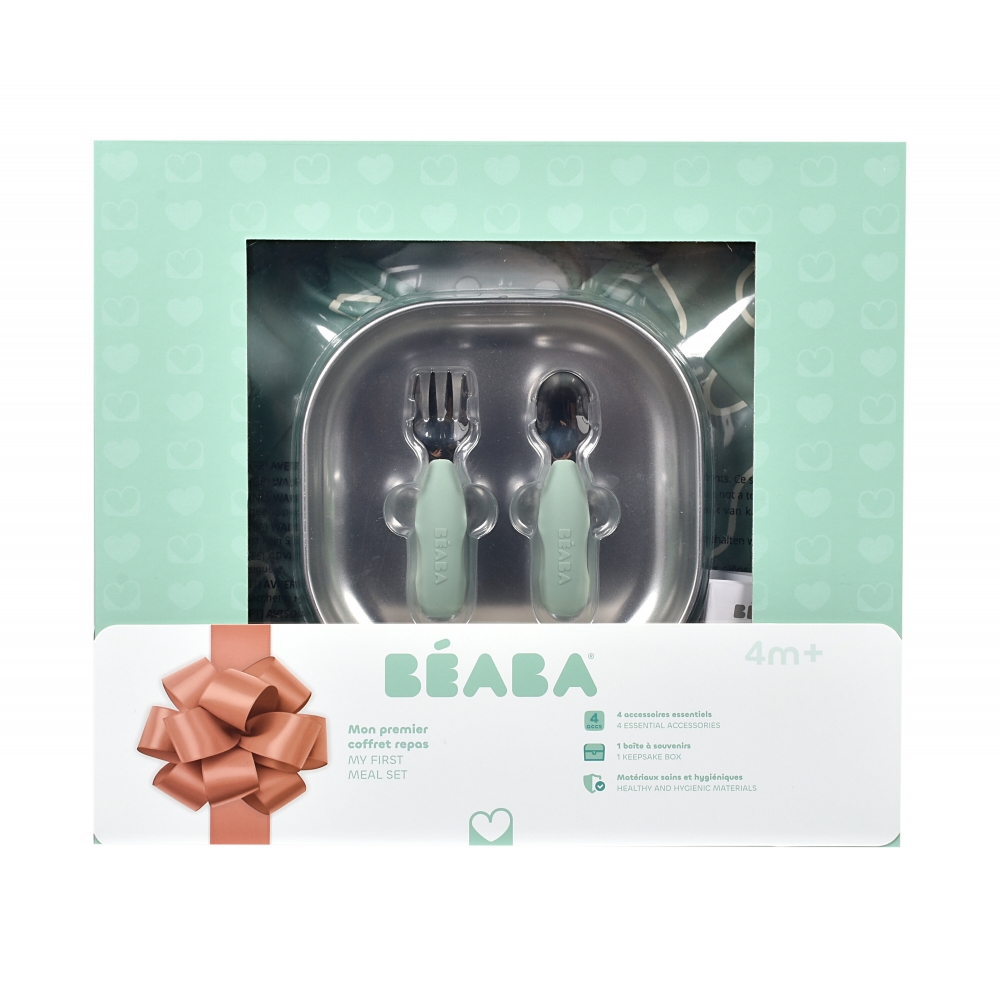Набір посуду Beaba Sage Green металевий подарунковий 4+ зелений - це вишуканий, повний і довговічний набір, створений для підтримки малюка від самого початку прикорму. Увага до деталей і вибір безпечних матеріалів роблять цей набір ідеальним для перших смакових відкриттів дитини.